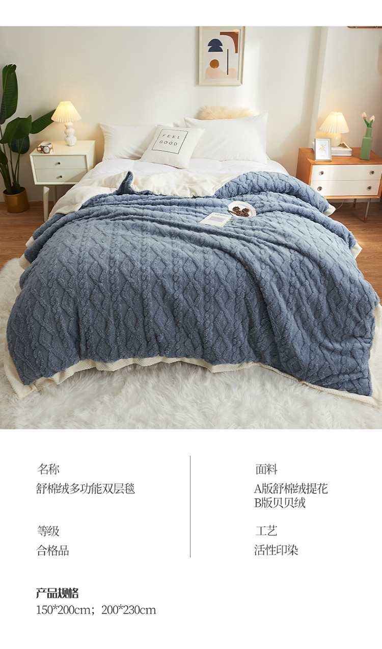 商品名称:吾秀家居 2022新款贝贝绒双层舒棉毯 舒棉毯蓝灰