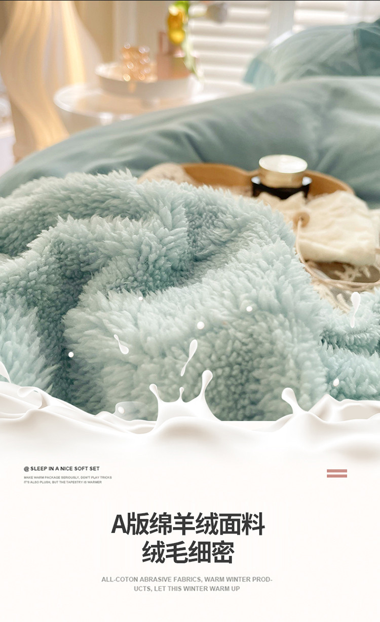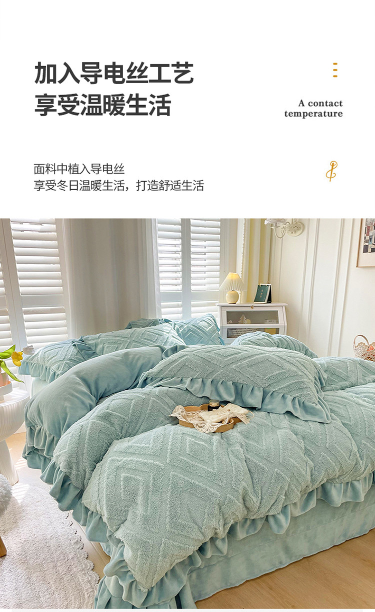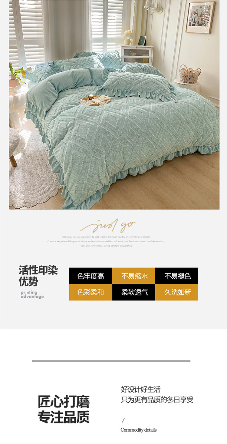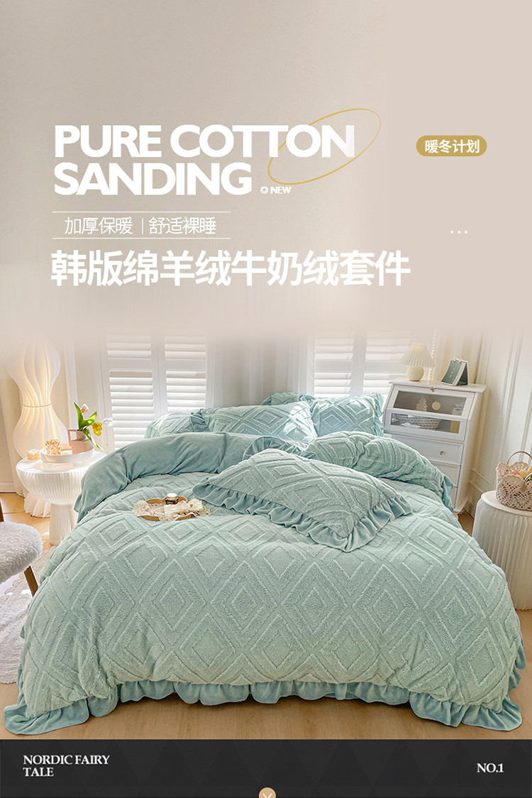 商品名称:仟网汇 新款艾格绵羊绒+牛奶绒韩式四件套 艾格-天晴蓝