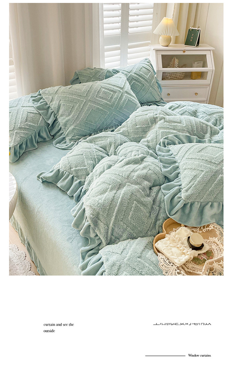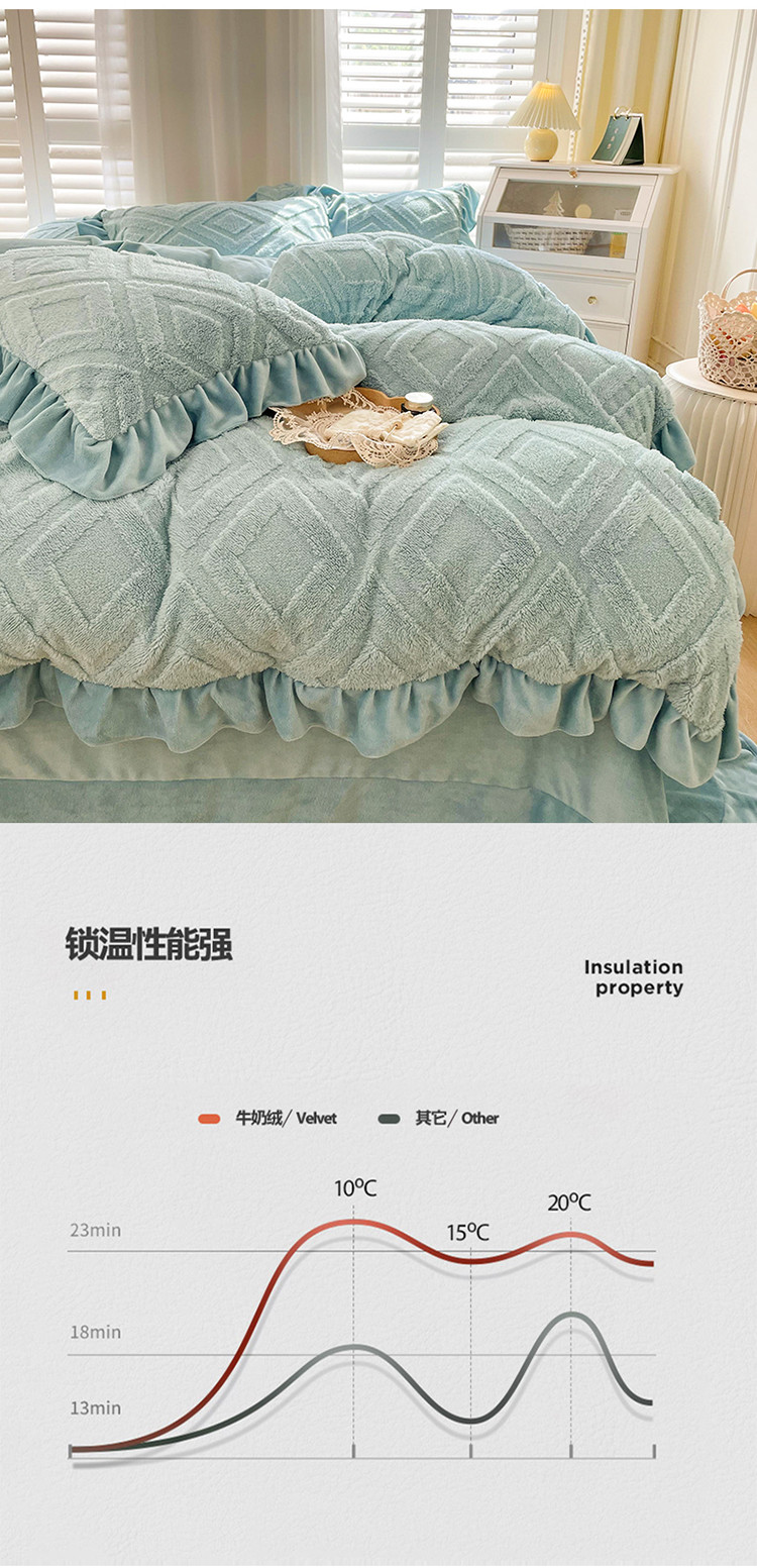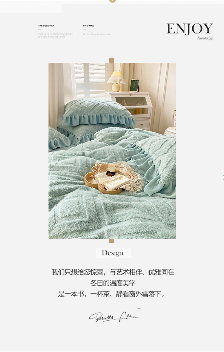 商品名称:仟网汇 新款艾格绵羊绒+牛奶绒韩式四件套 艾格-天晴蓝
