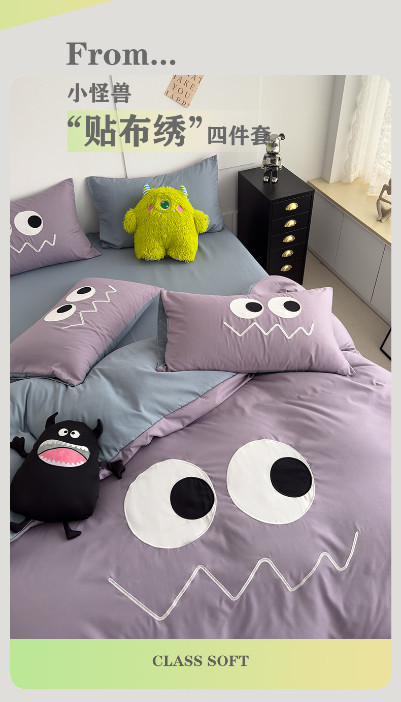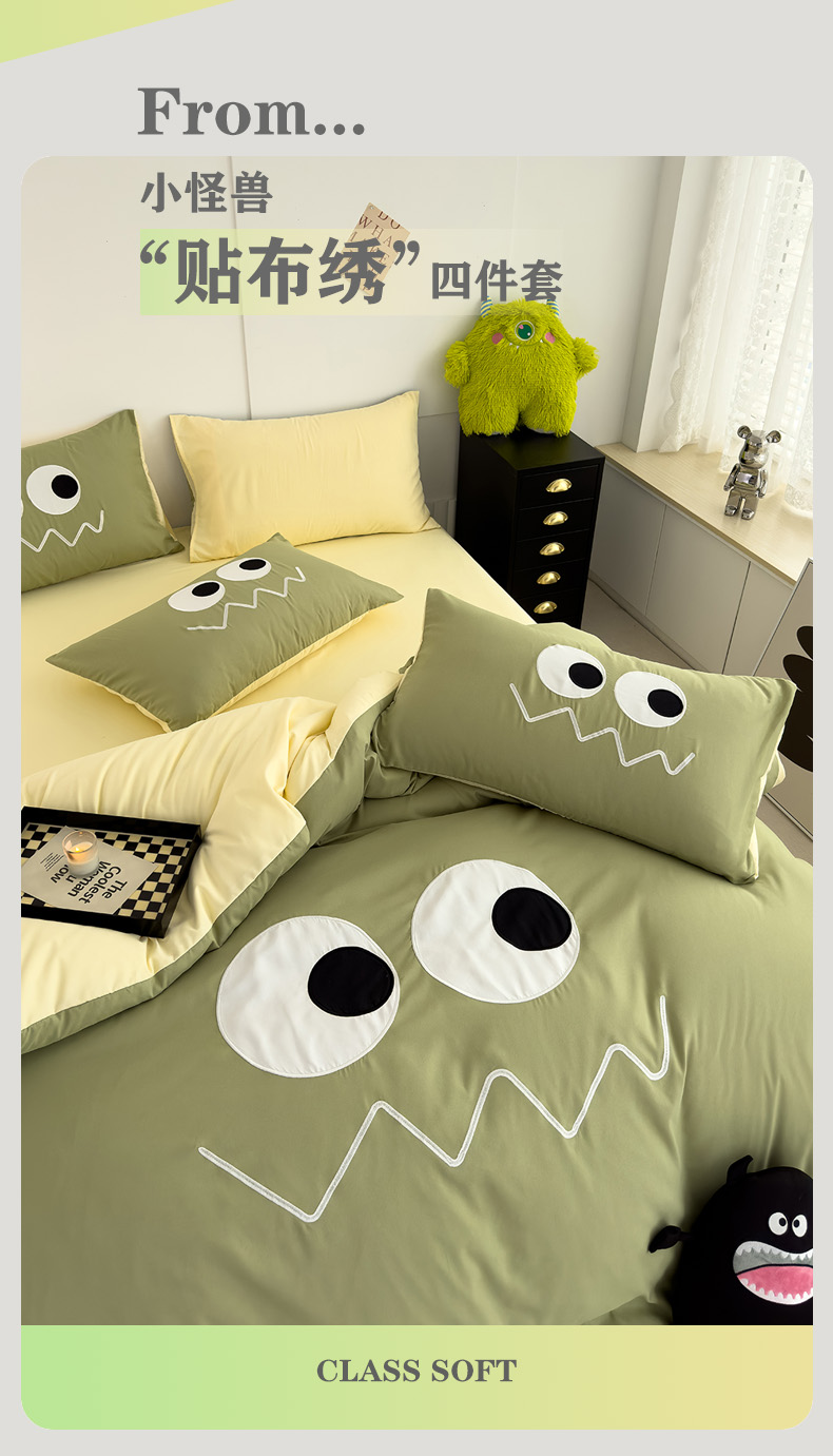 当前位置: 91家纺网 > 商品网购 > 床品套件 > 四件套 > 磨毛活性四件套 > 曼谷 贴布绣四件套小怪兽柔软磨毛床上用品水洗棉套件 小怪兽-黑糖海盐