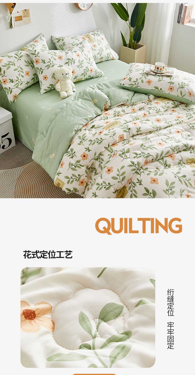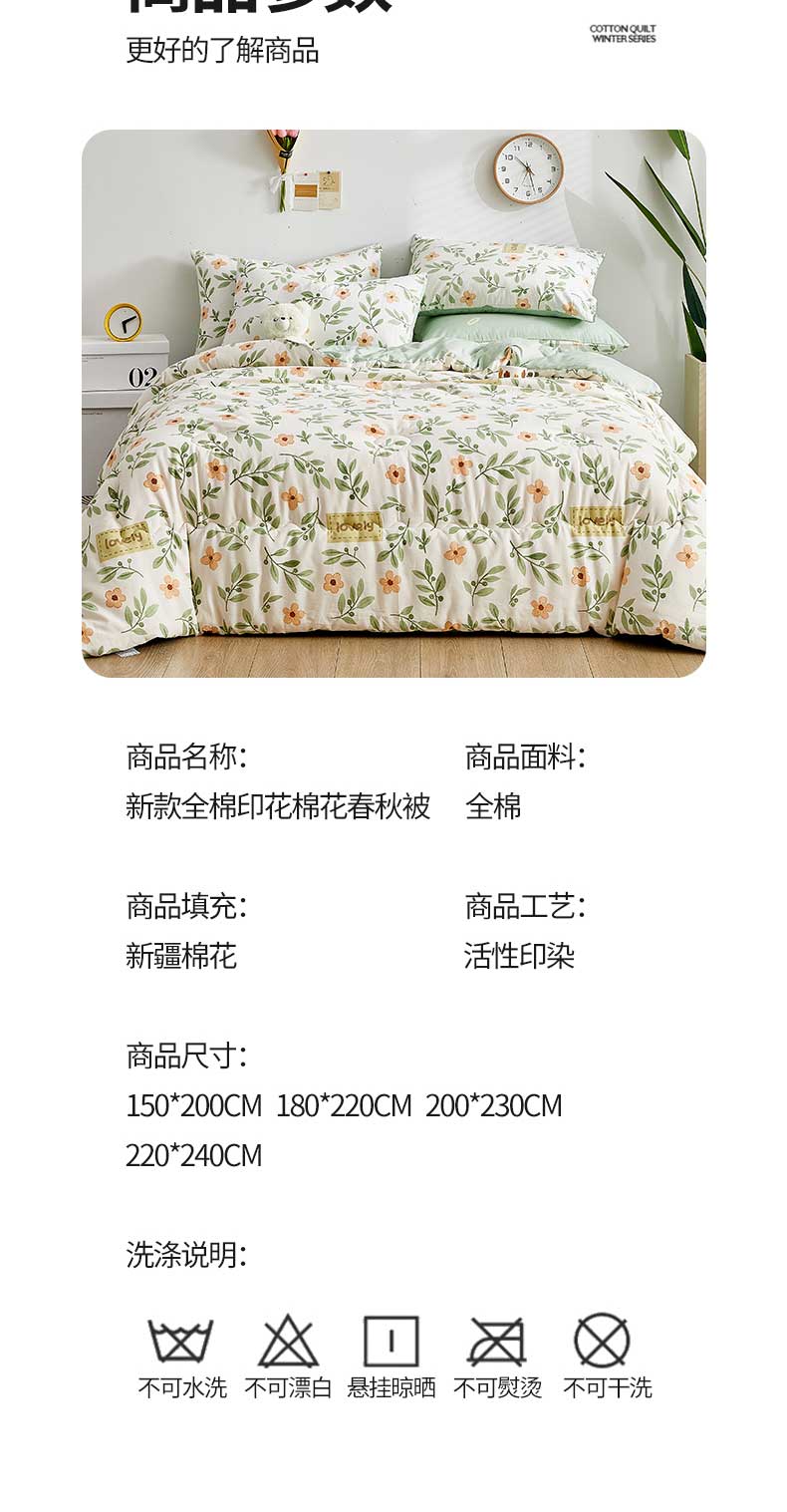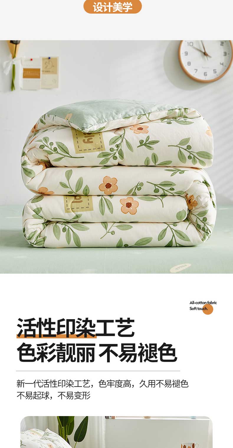 • 91家纺网 家纺一手货源 找家纺 格子铺 2023新款全棉印花棉花春秋被 青柠薄荷