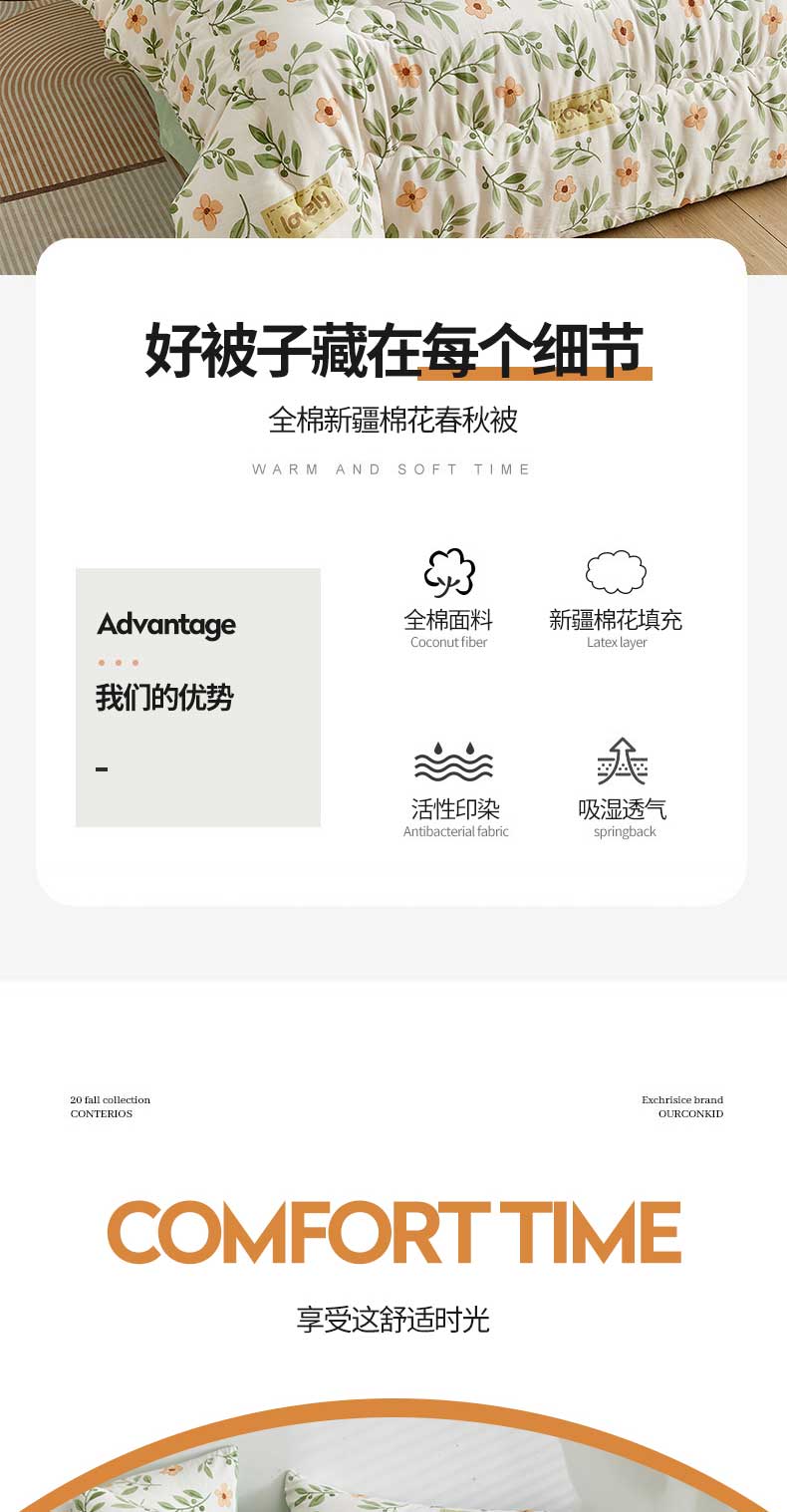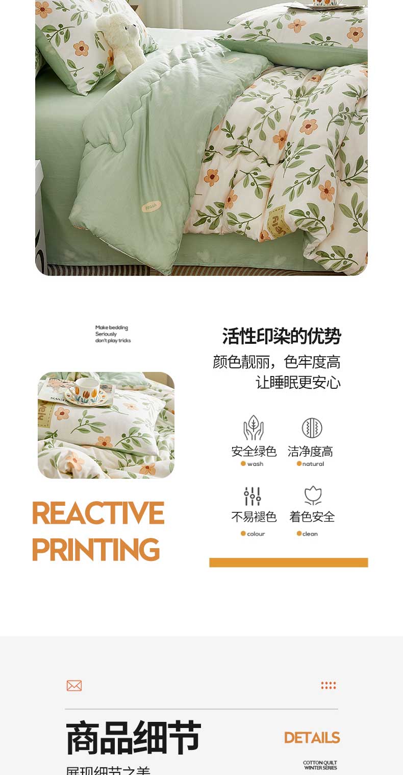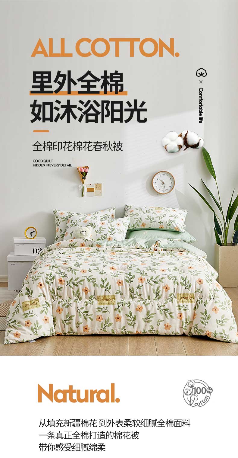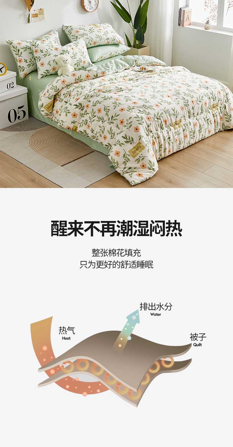 • 91家纺网 家纺一手货源 找家纺 格子铺 2023新款全棉印花棉花春秋被 青柠薄荷