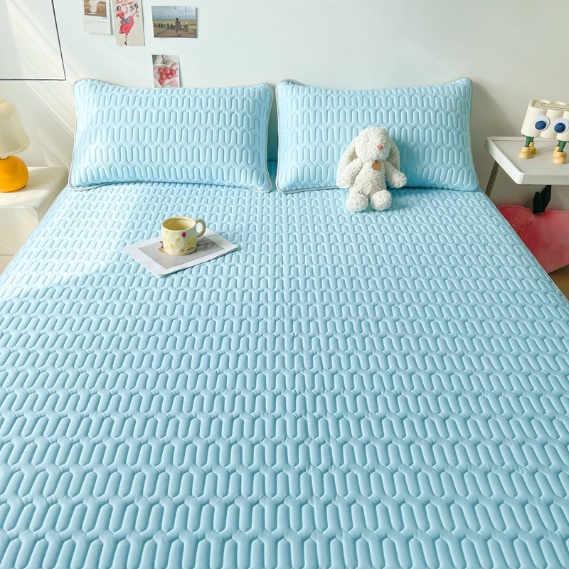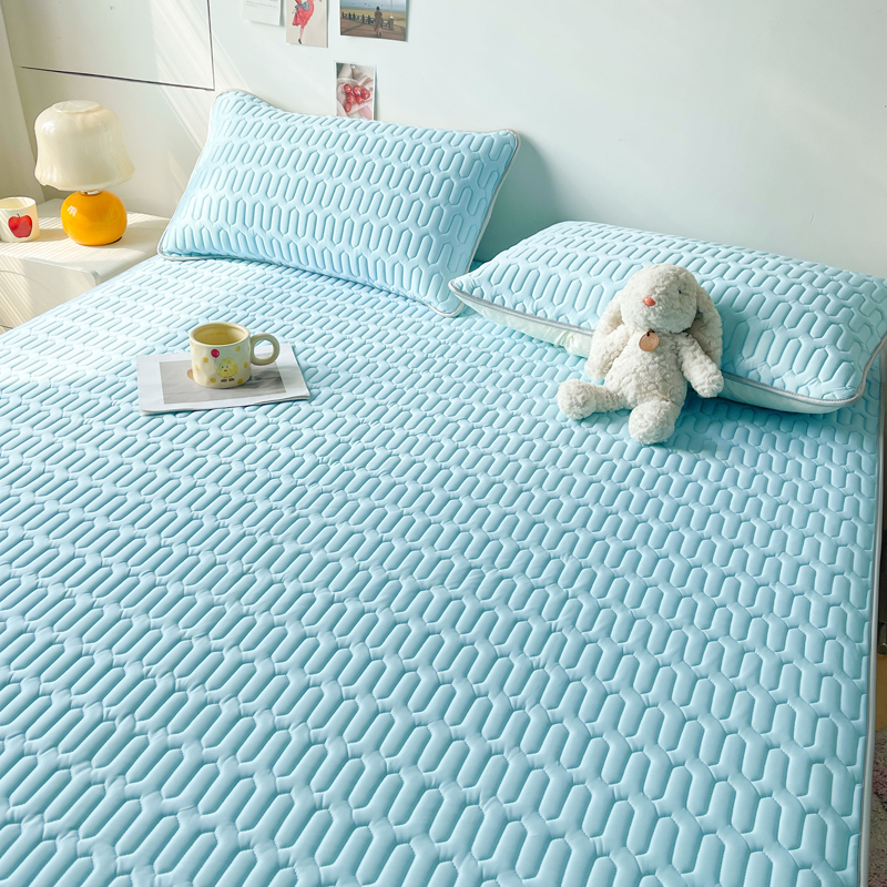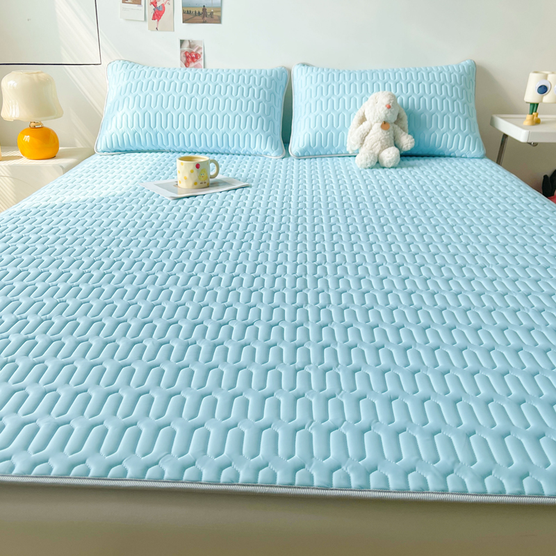 商品名称:湘之帛 2025新款0.5m直播爆款加厚印花乳胶凉感丝凉席三件套 晴空蓝