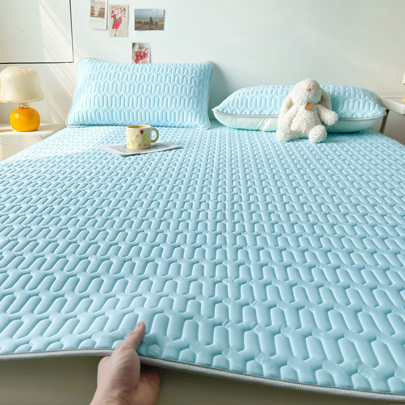 湘之帛 2025新款0.5m直播爆款加厚印花乳胶凉感丝凉席三件套 晴空蓝