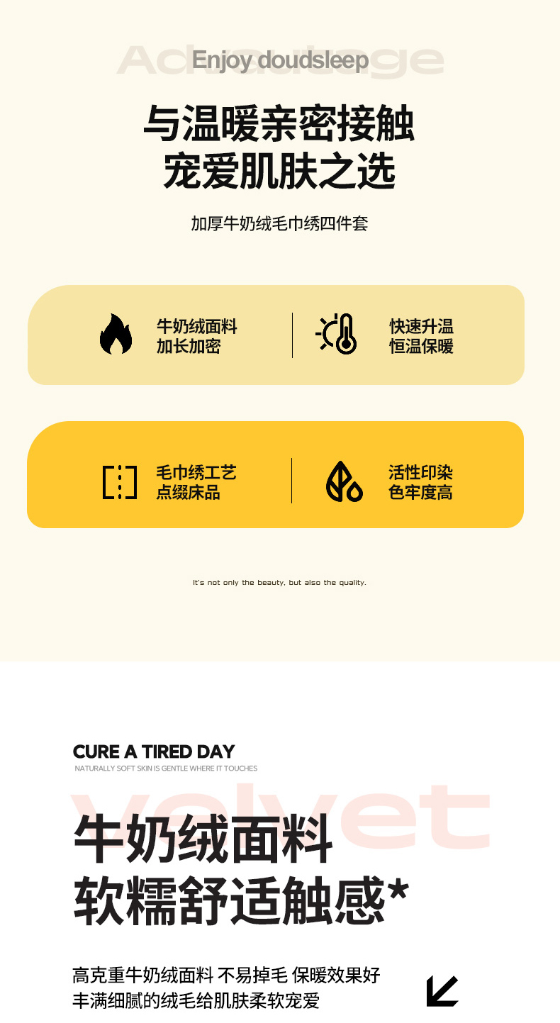 商品名称:(总)一比一家纺 2025新款卡通毛巾绣牛奶绒四件套