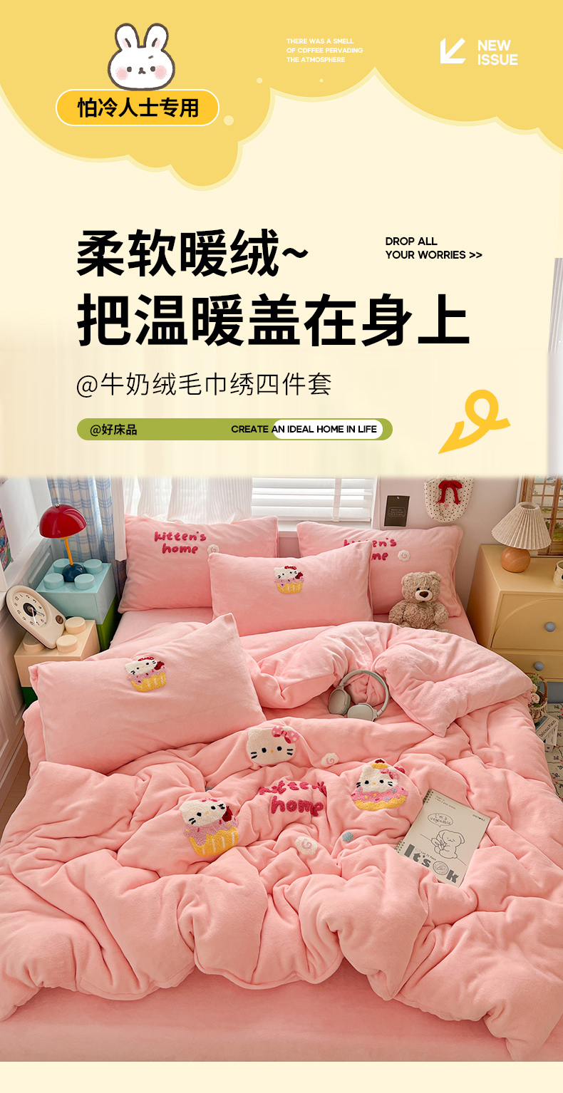 (总)一比一家纺 2025新款卡通毛巾绣牛奶绒四件套