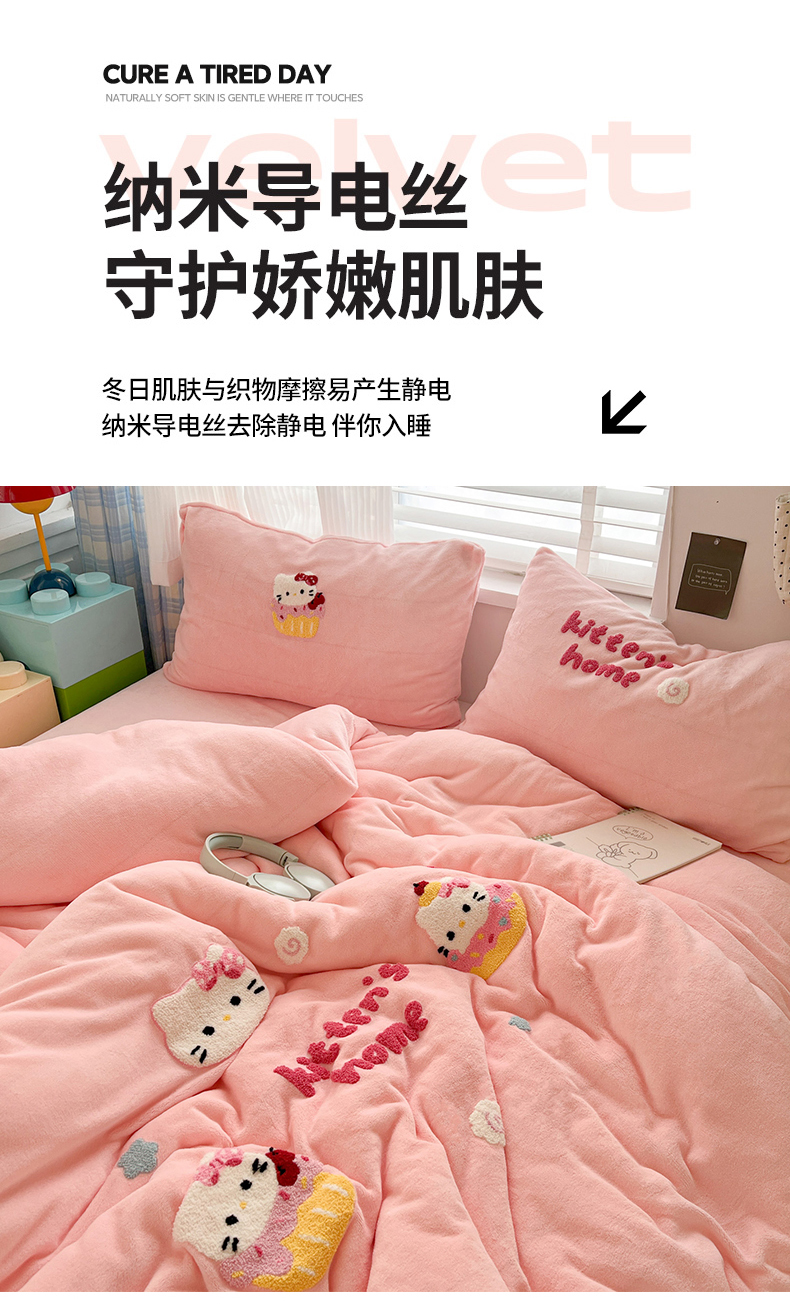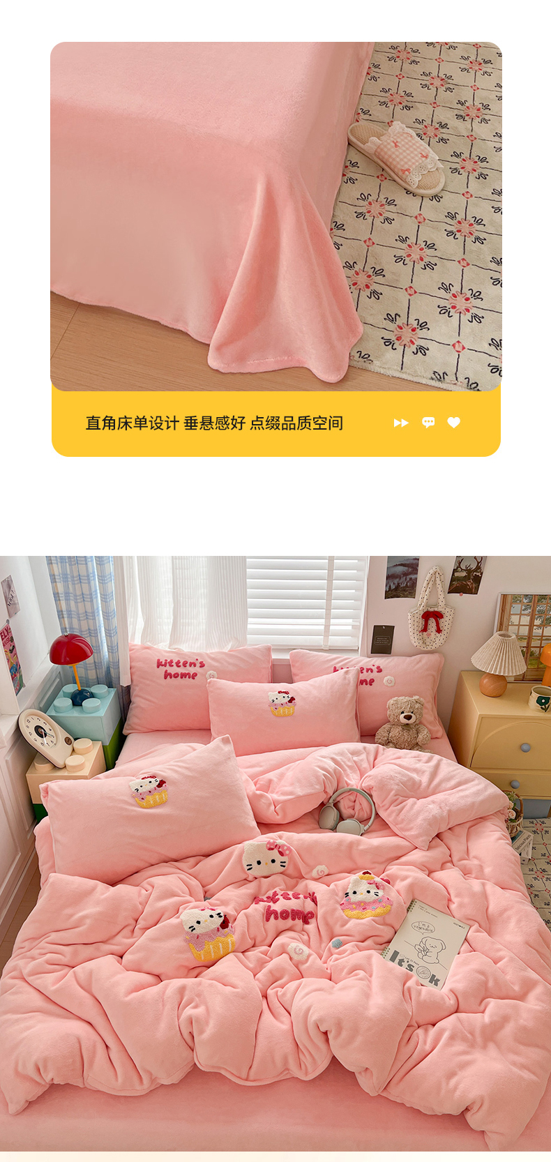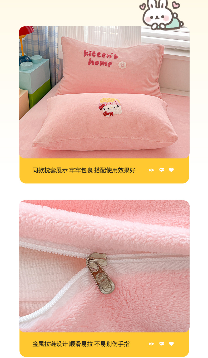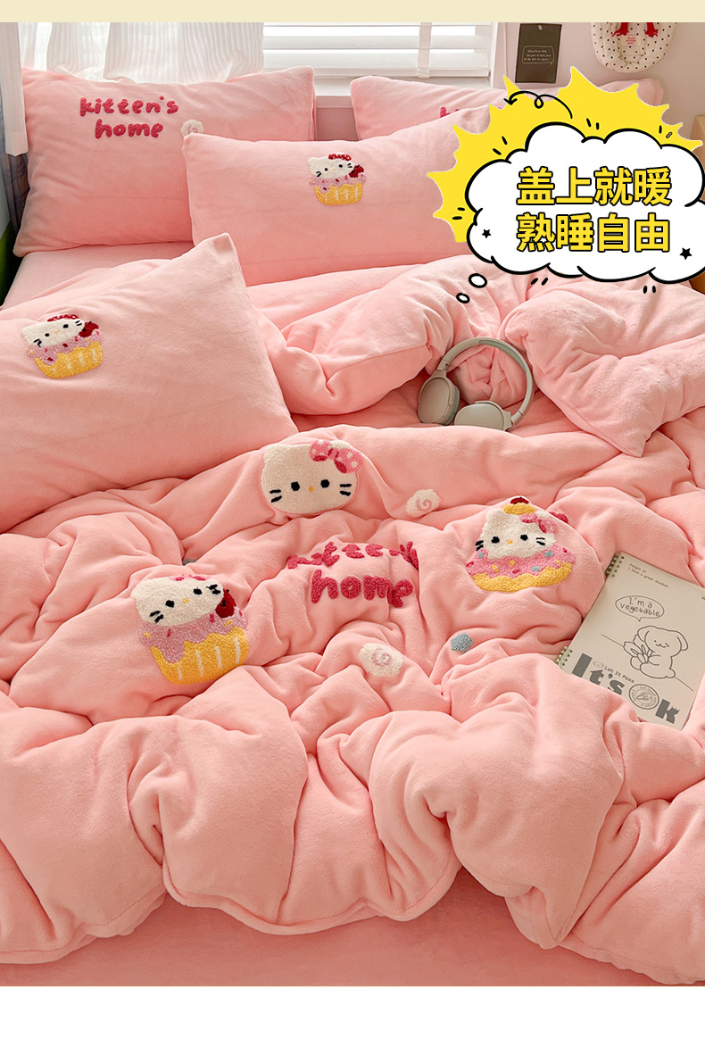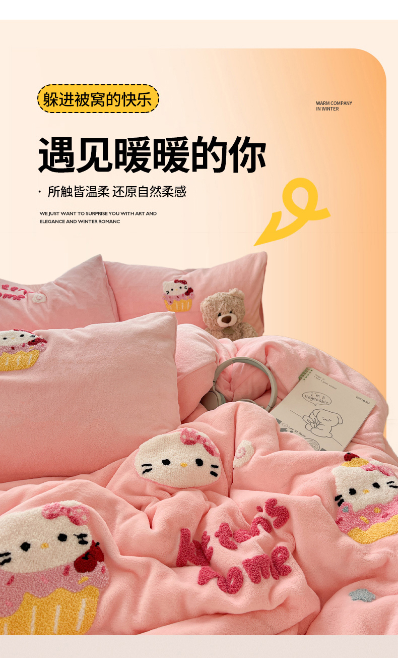 (总)一比一家纺 2025新款卡通毛巾绣牛奶绒四件套,KT粉,KT蓝,蛋糕熊,花田女孩,咖啡狗,腊肠狗,胖胖熊灰,胖胖熊绿,甜心奶酪