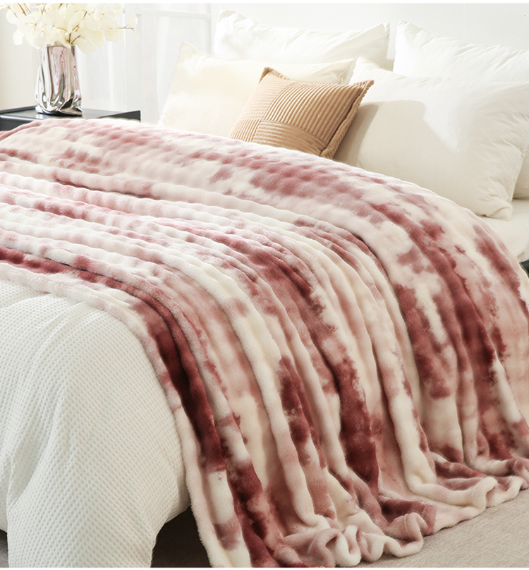 (总)巴木赫2025新款200g水墨印染抽条毛毯毯子,大理石纹,红棕,奶白,浅咖,深灰,水墨画,紫色,棕色