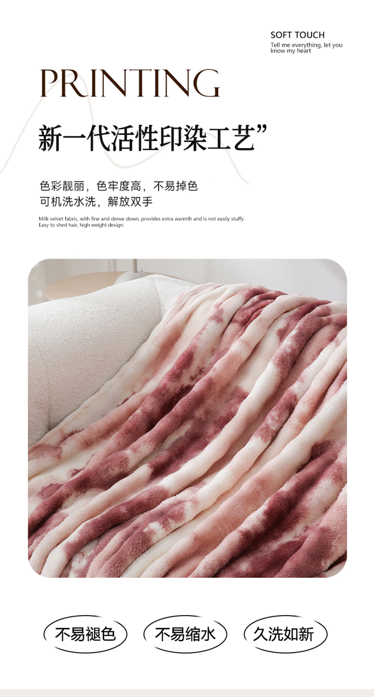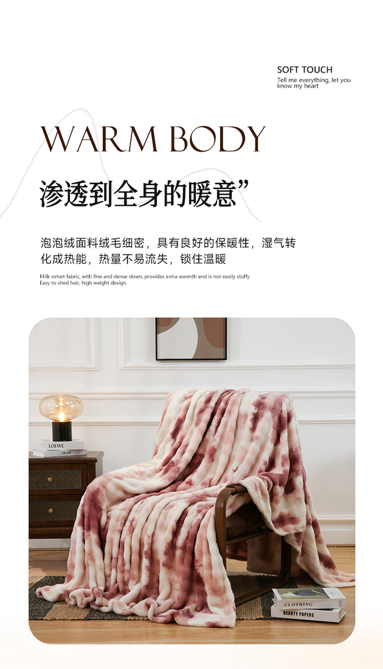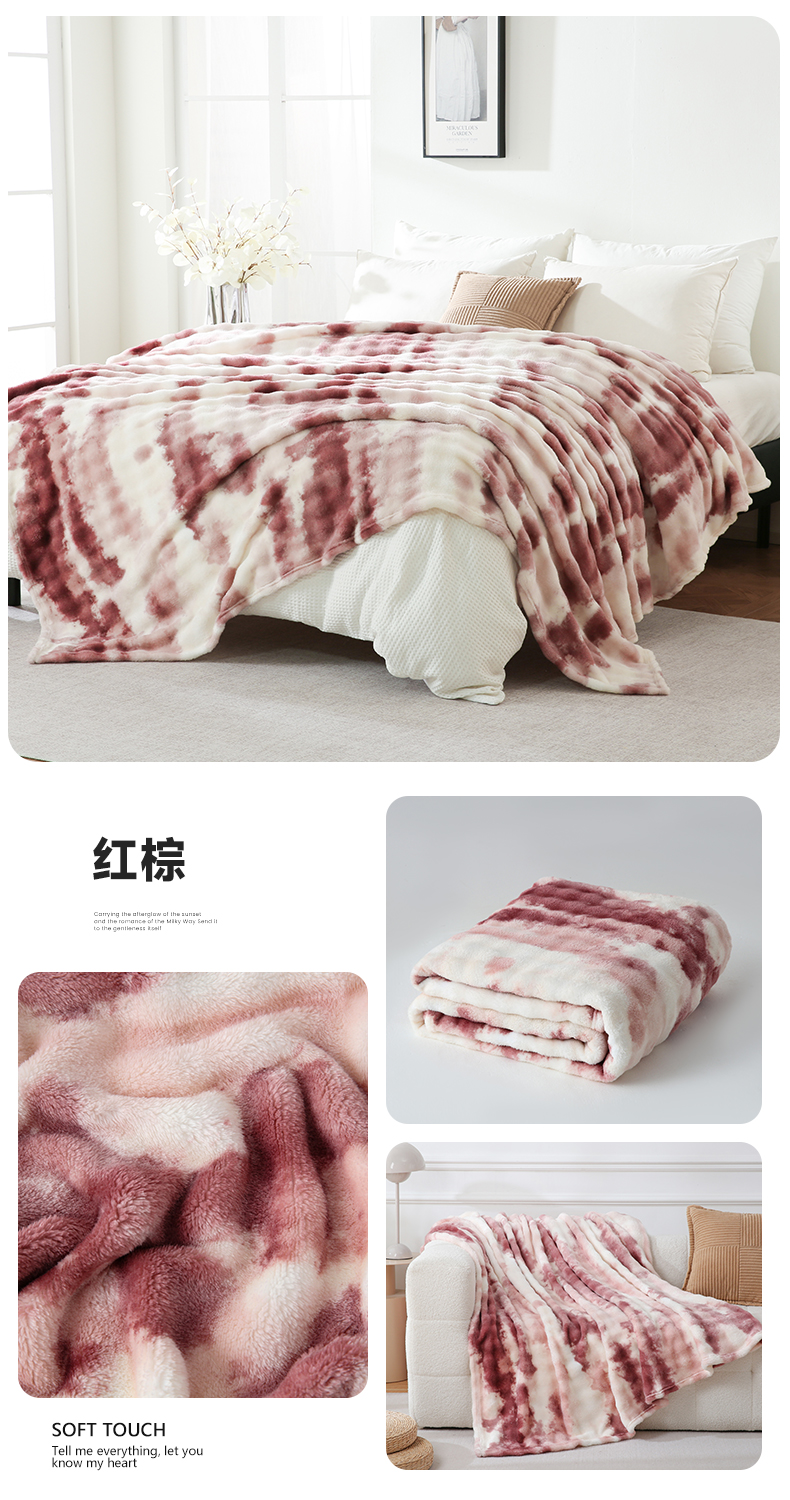(总)巴木赫 2024新款300克印花泡泡毛毯毯子,大理石纹,红棕,奶白,浅咖,深灰,水墨画,紫色,棕色