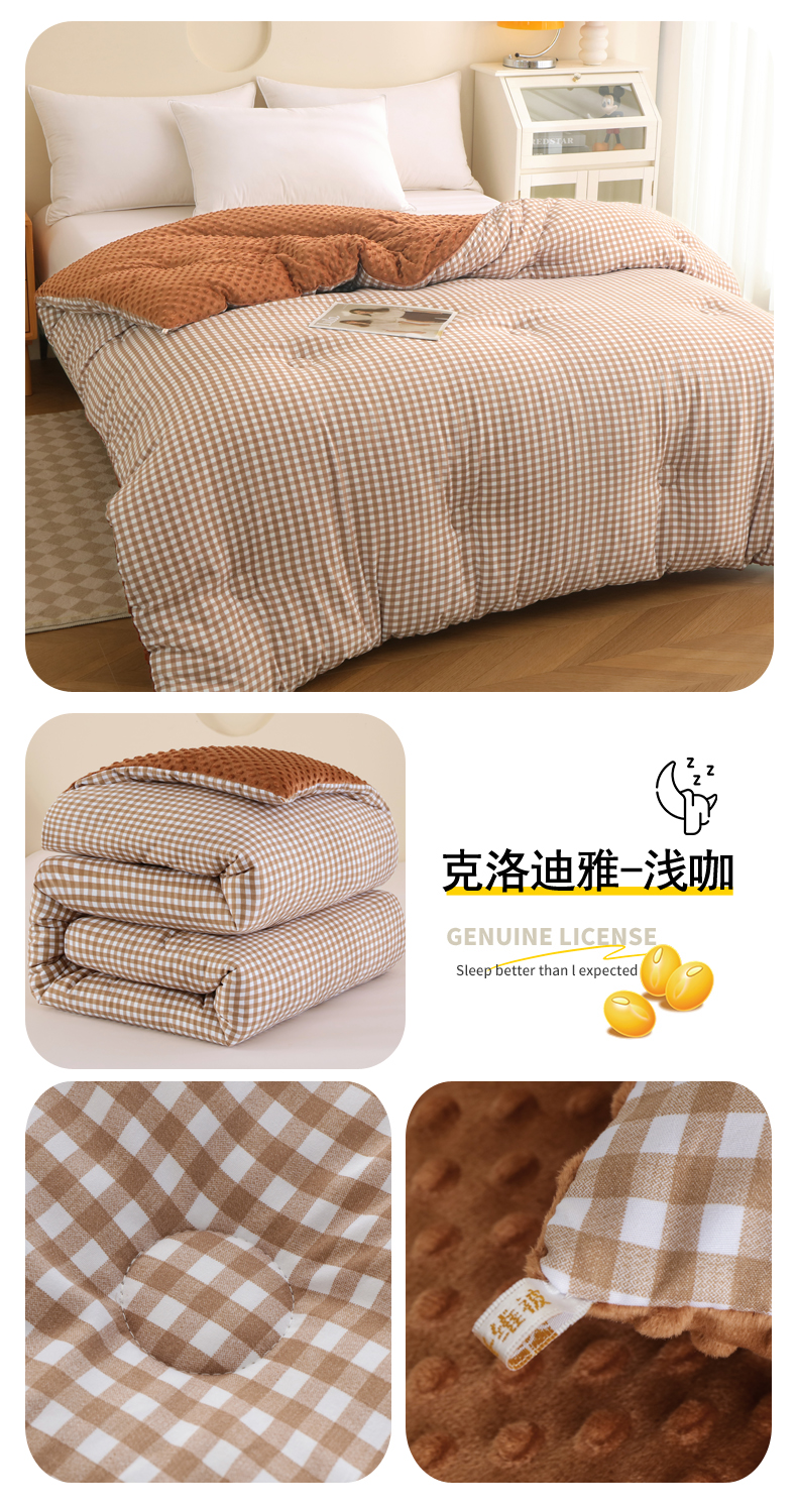 • 91家纺网 家纺一手货源 找家纺 爱宝被业 2025新款水洗棉双层纱豆豆绒被 露西-浅咖