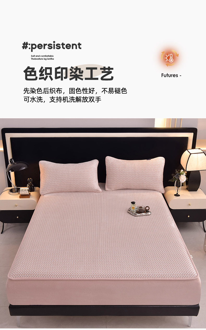 商品名称:好眠好梦家纺 2024新款色织提花牛奶绒床笠四件套 玫瑰粉