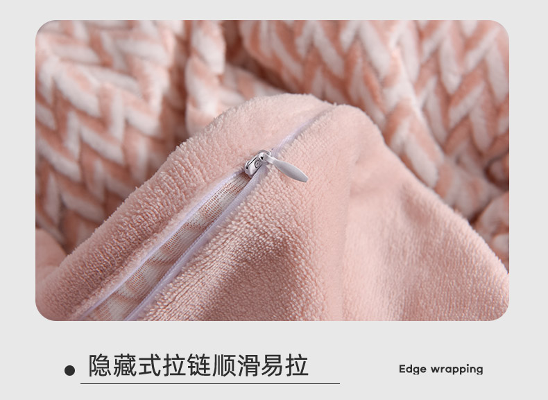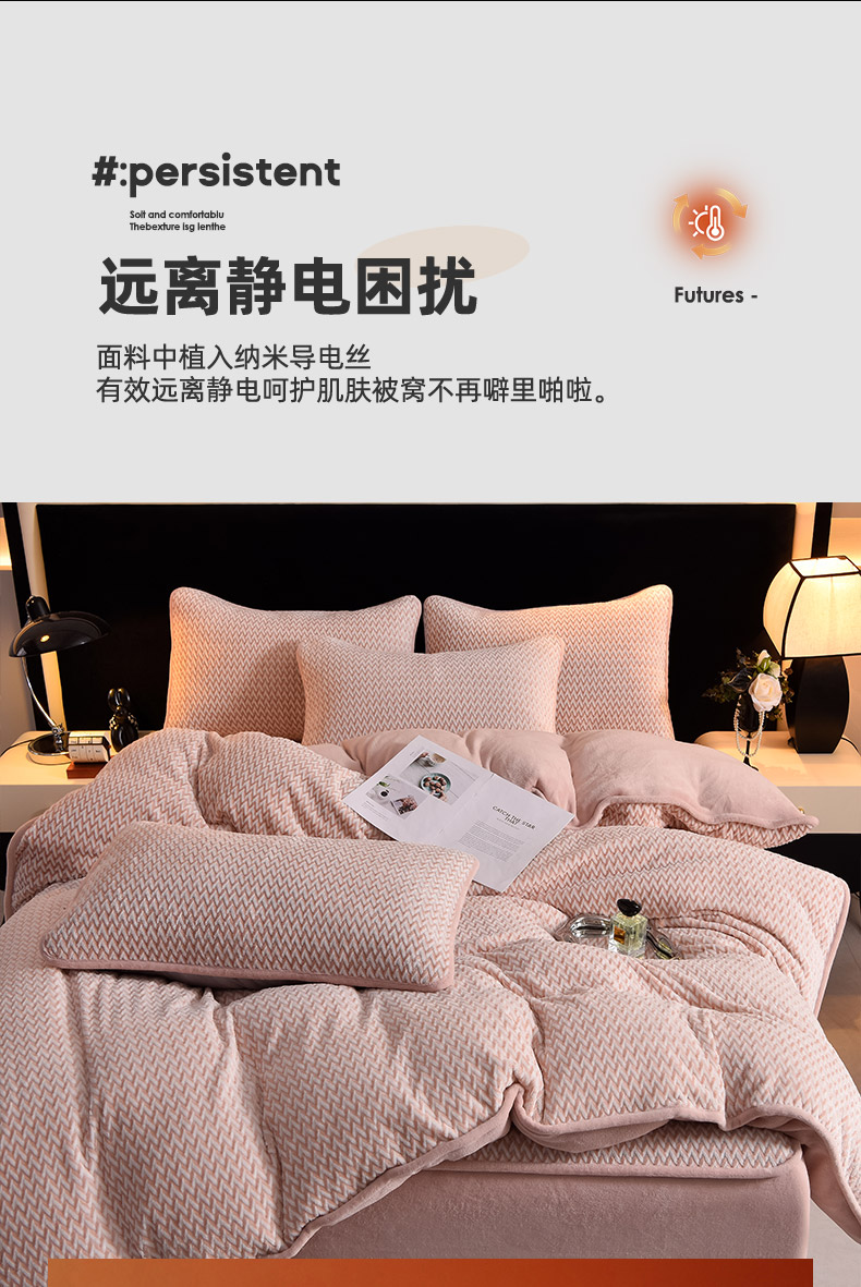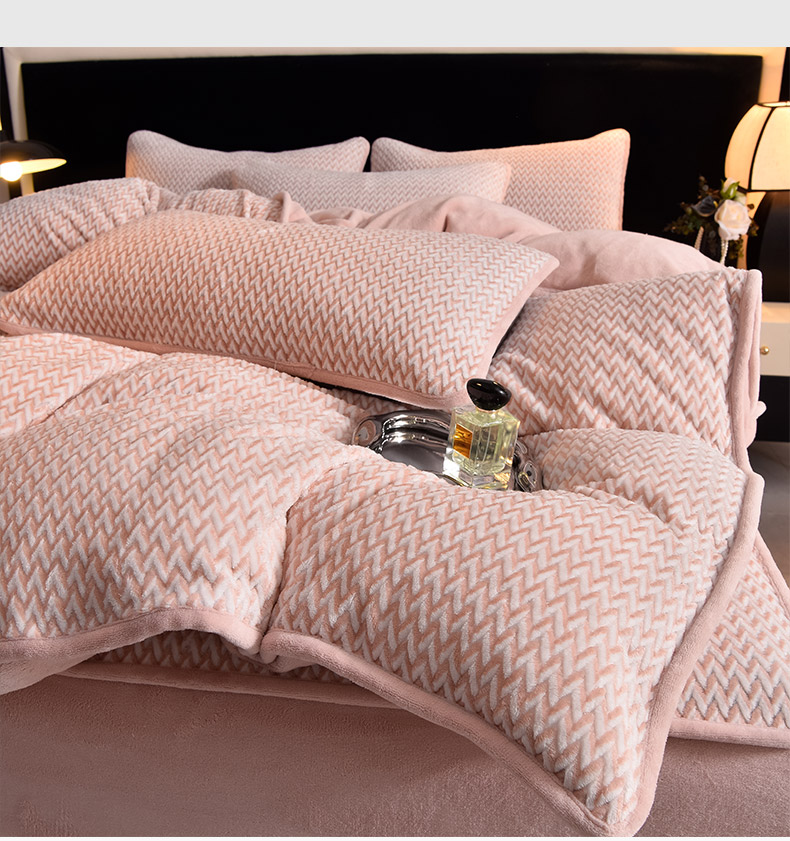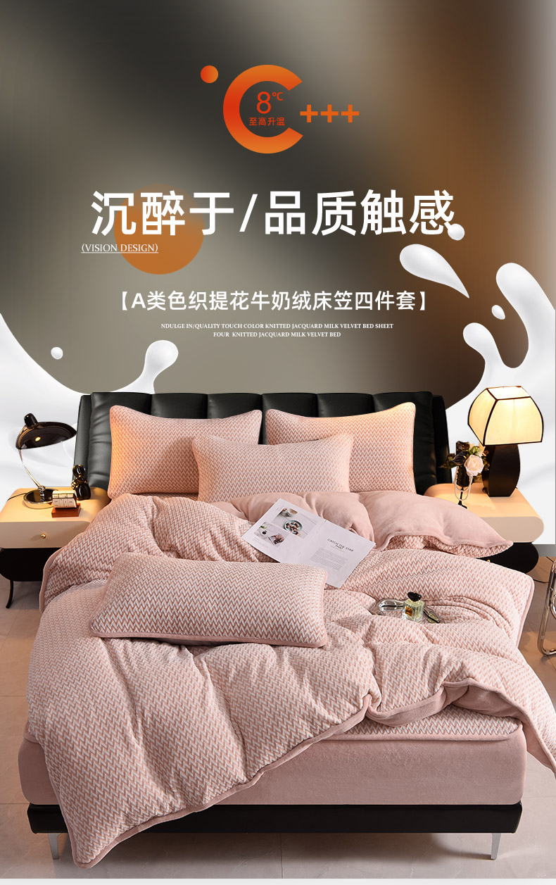 好眠好梦家纺 2024新款色织提花牛奶绒床笠四件套 玫瑰粉