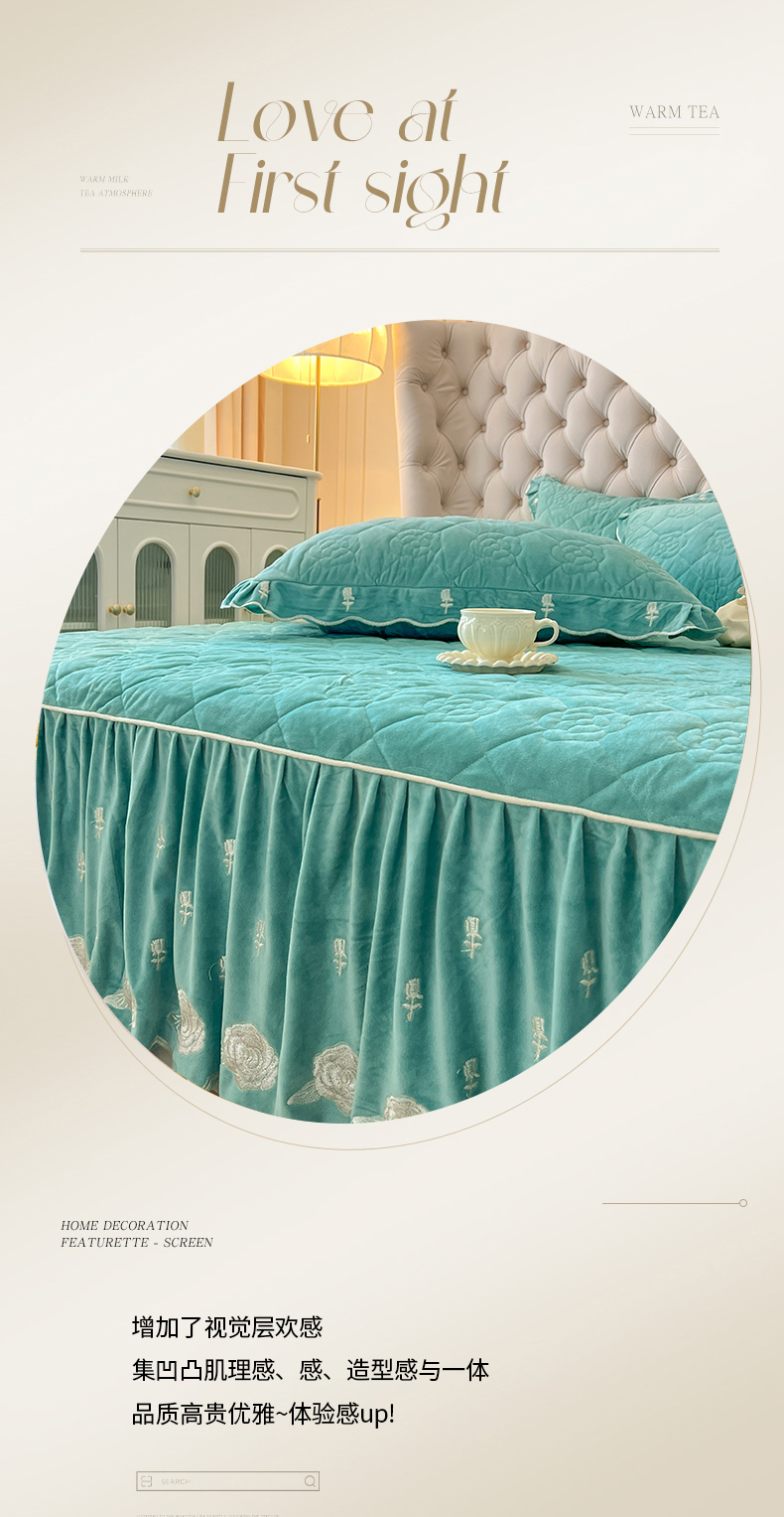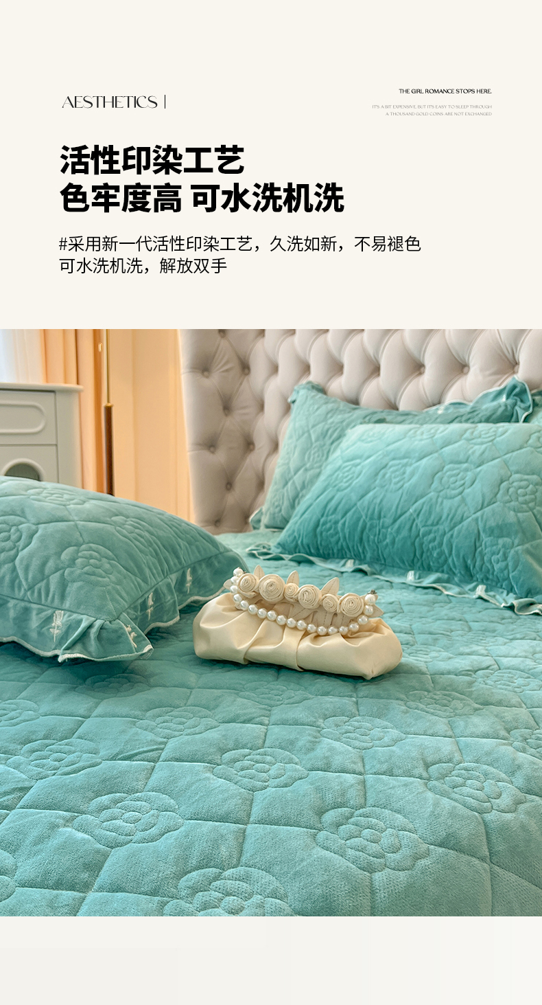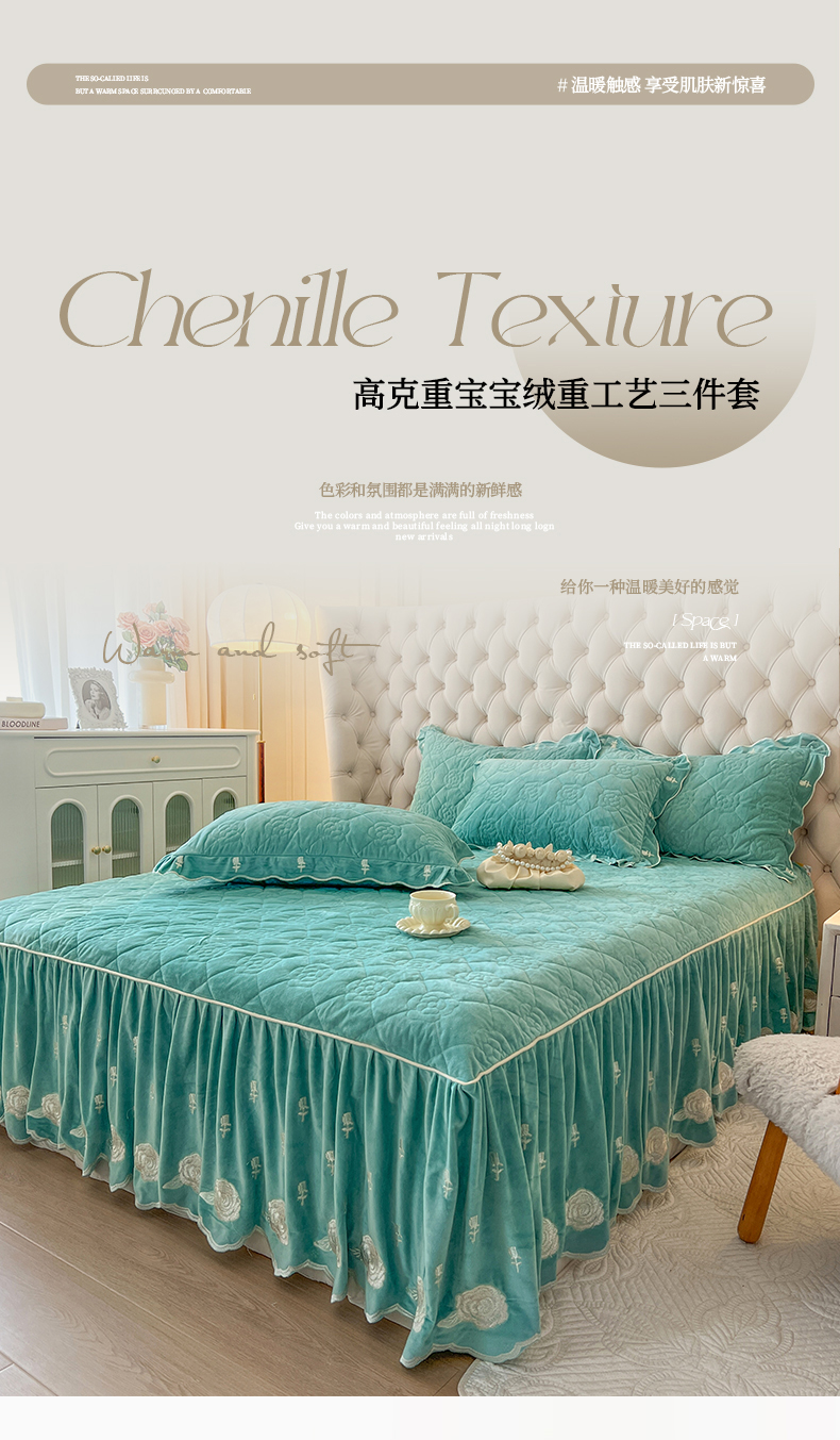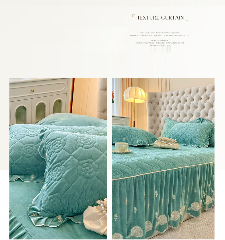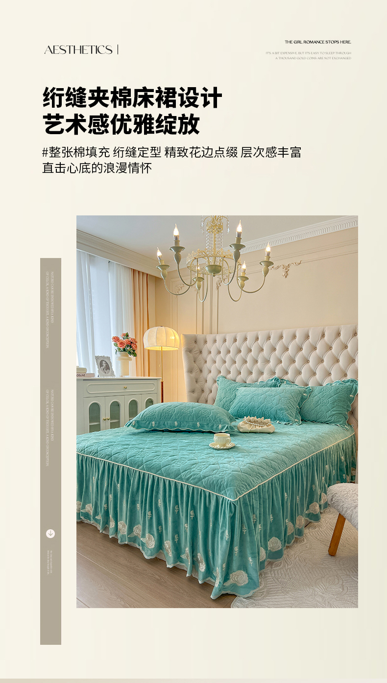 麒豆豆 2024新款宝宝绒床裙三件套-晨曦玫瑰 晨曦玫瑰-暮光绿