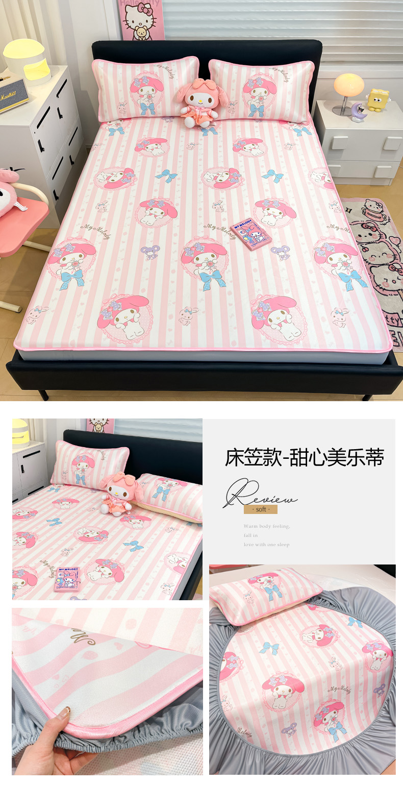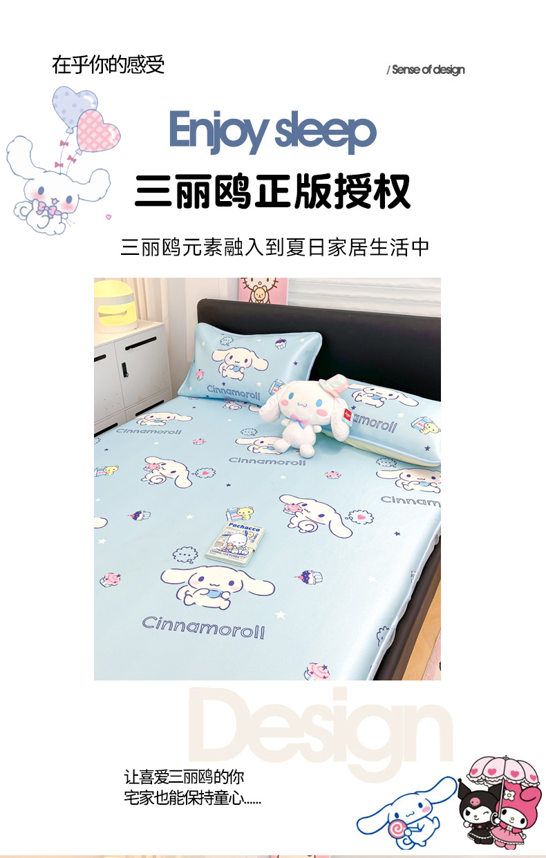 暮思家居 2025新款三丽鸥正版授权数码印花A类可机洗1200D冰丝凉席三件套床笠款系列 床笠款-甜品玉桂狗