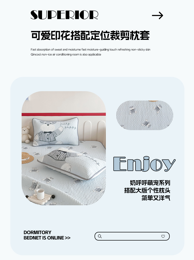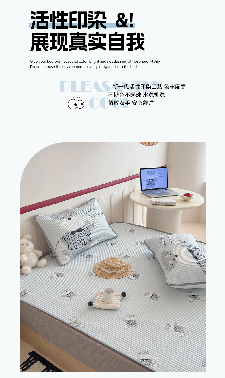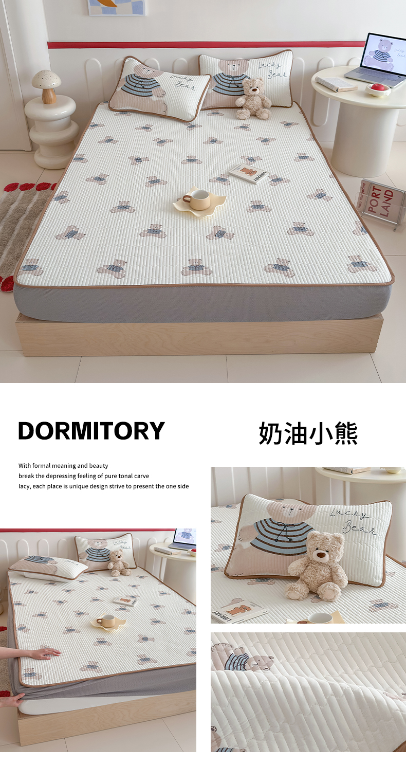 • 91家纺网 家纺一手货源 找家纺 RYB红黄兰 2025新款INS原创超萌卡通锦氨冰皮夹棉软席凉席床笠三件套 奶油小熊