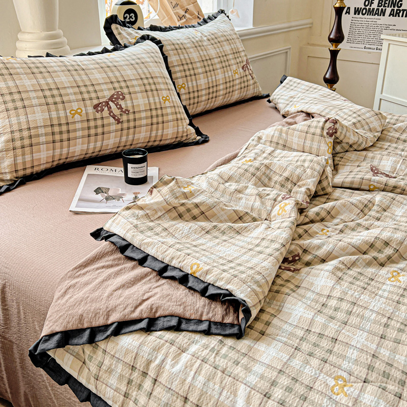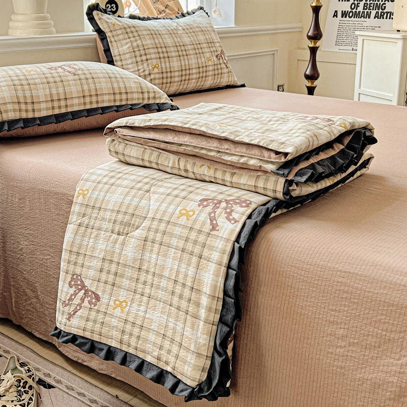 仟网汇2025新款赫本风花边夏被空调被 太妃糖