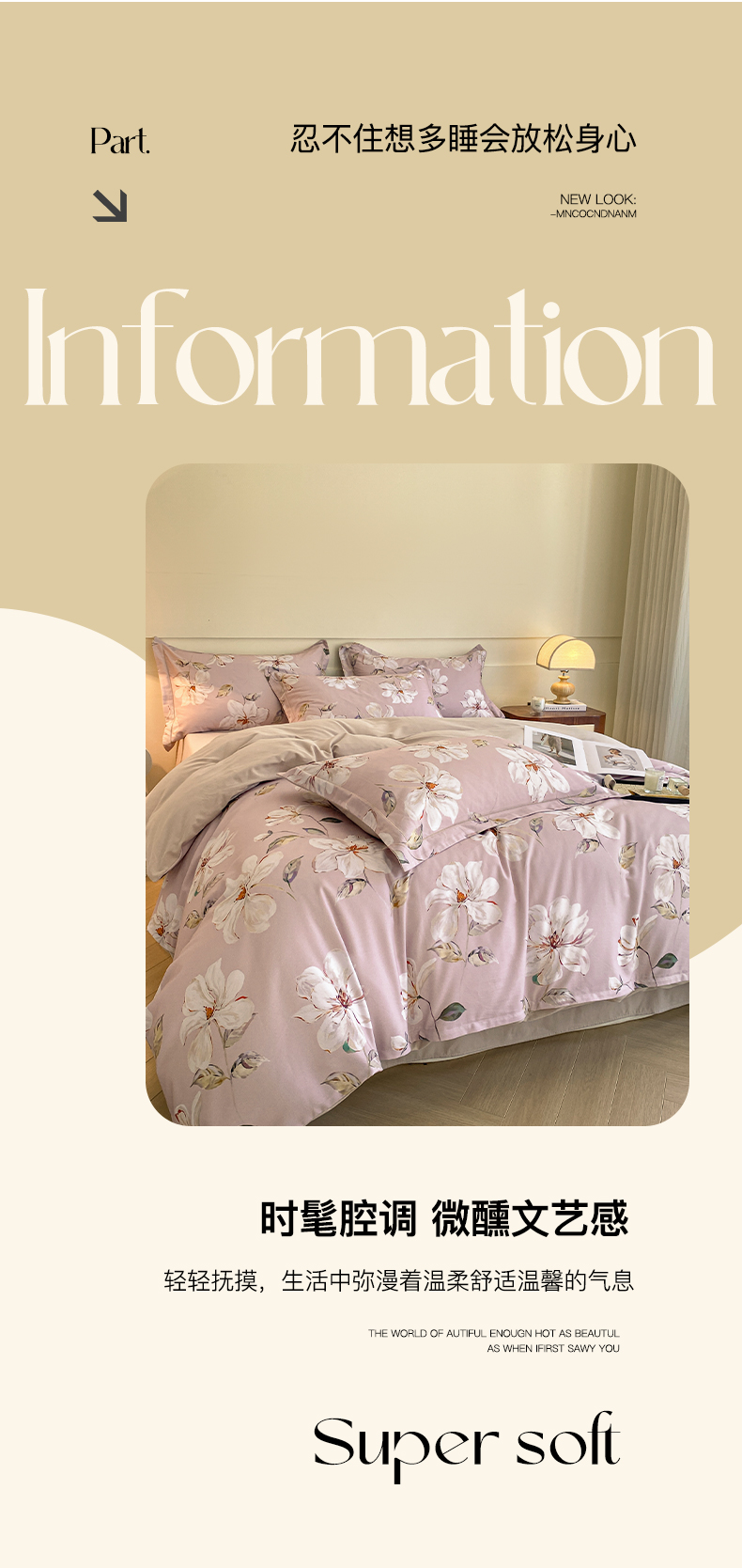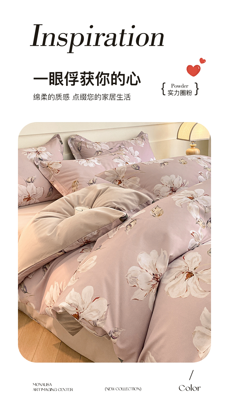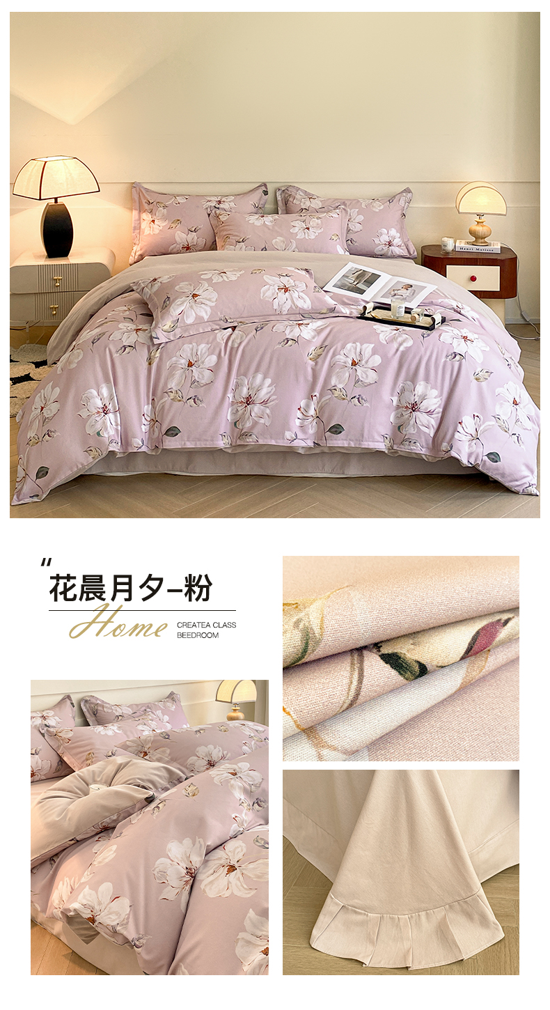 商品名称:格里芬家纺 2025全棉加厚磨毛数码印花四件套花晨月夕-粉