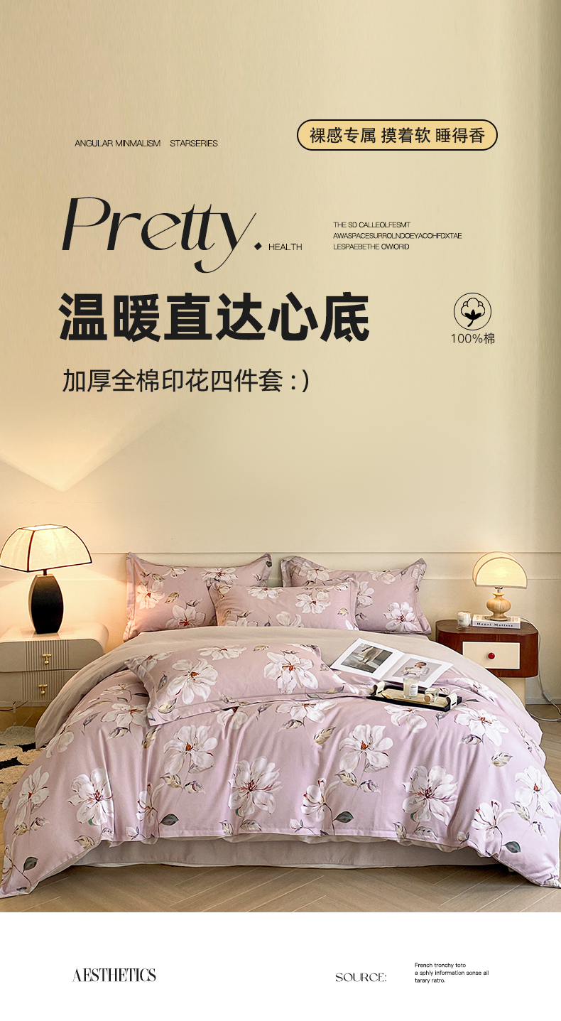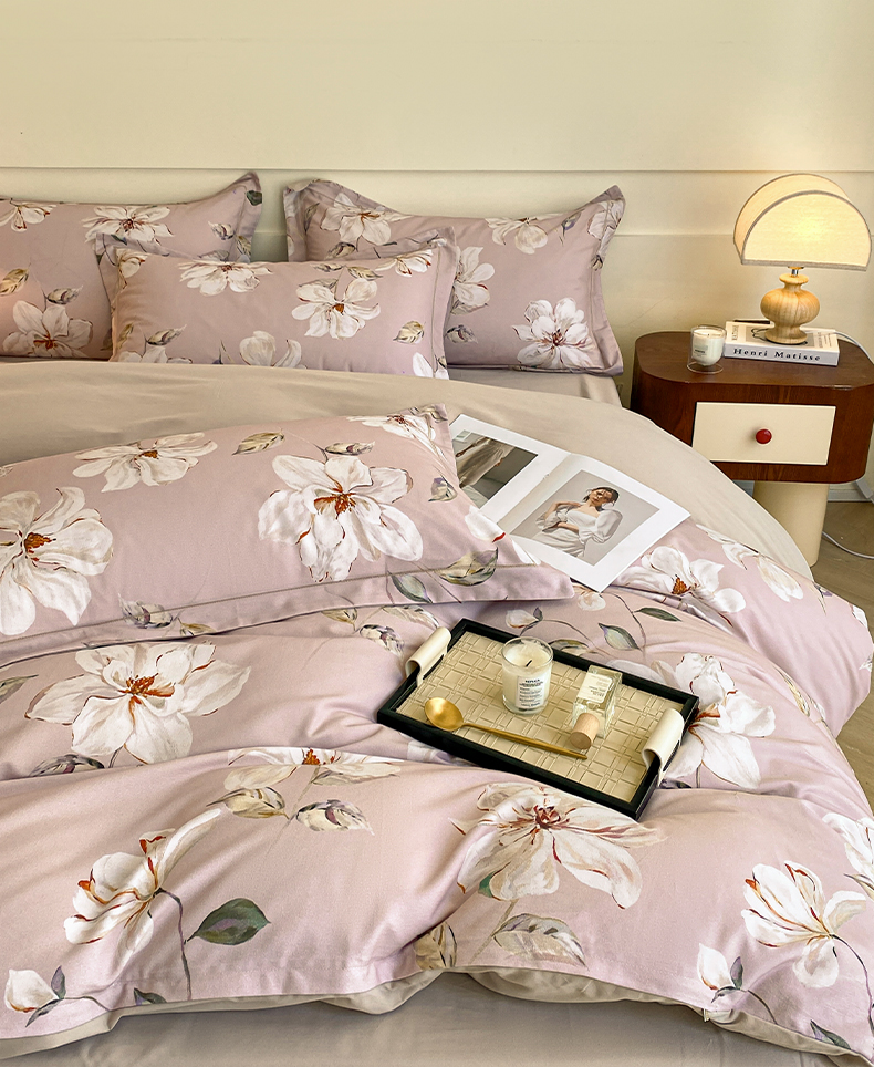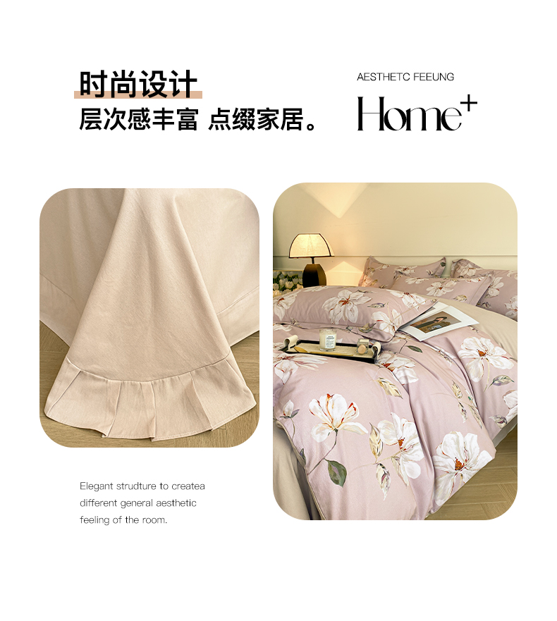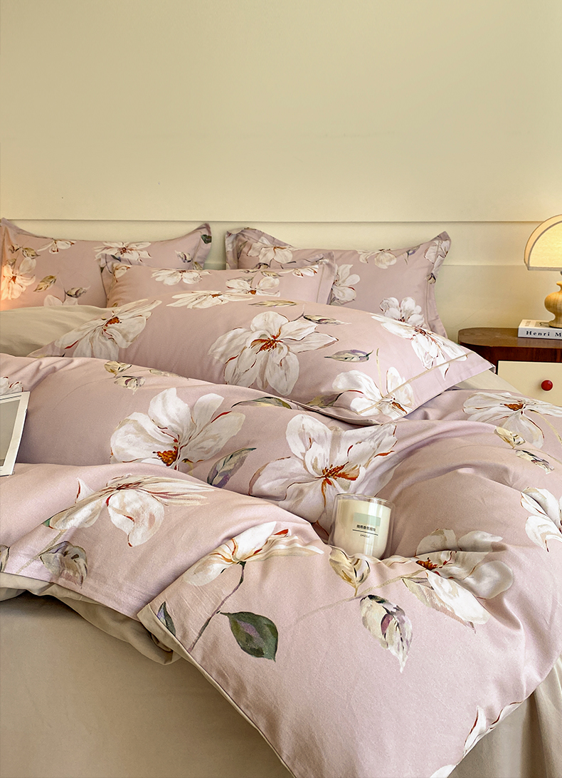 商品名称:格里芬家纺 2025全棉加厚磨毛数码印花四件套花晨月夕-粉