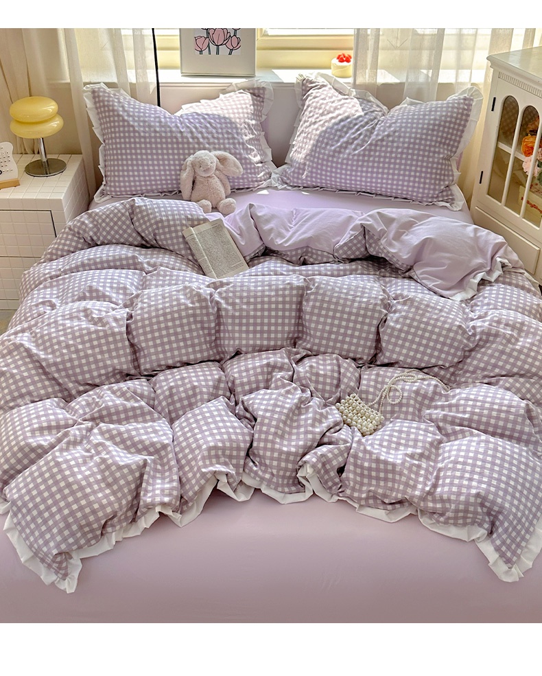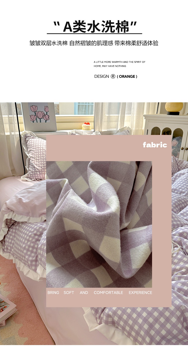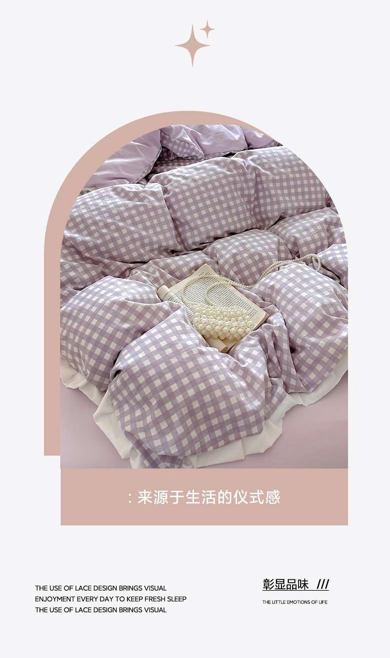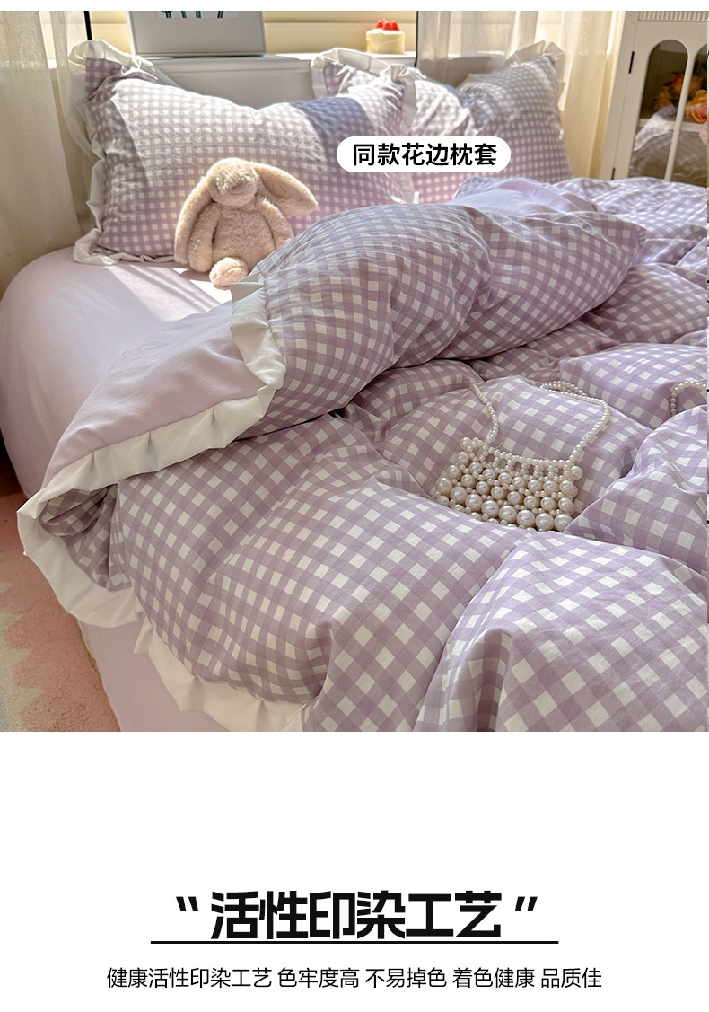 当前位置: 91家纺网 > 商品网购 > 床品套件 > 四件套 > 水洗棉四件套 > 冕悠家纺 2025新款少女心加厚超柔皱皱小花边水洗棉四件套(加微信提供买家秀 ) 公主-紫格
