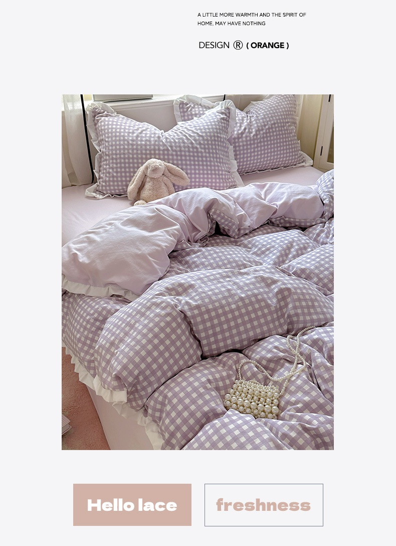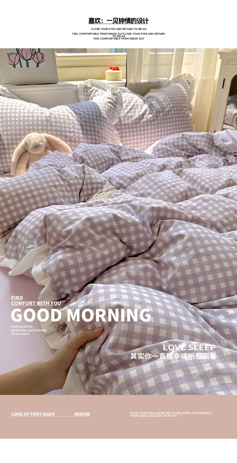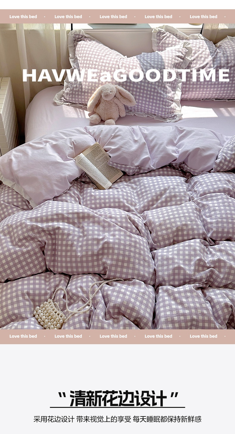 当前位置: 91家纺网 > 商品网购 > 床品套件 > 四件套 > 水洗棉四件套 > 冕悠家纺 2025新款少女心加厚超柔皱皱小花边水洗棉四件套(加微信提供买家秀 ) 公主-紫格
