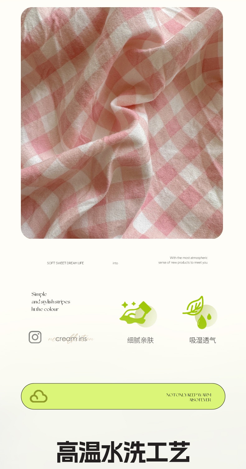 (总)冕悠家纺 2025新款少女心超柔加厚混搭格子水洗棉四件套(加微信提供买家秀 )