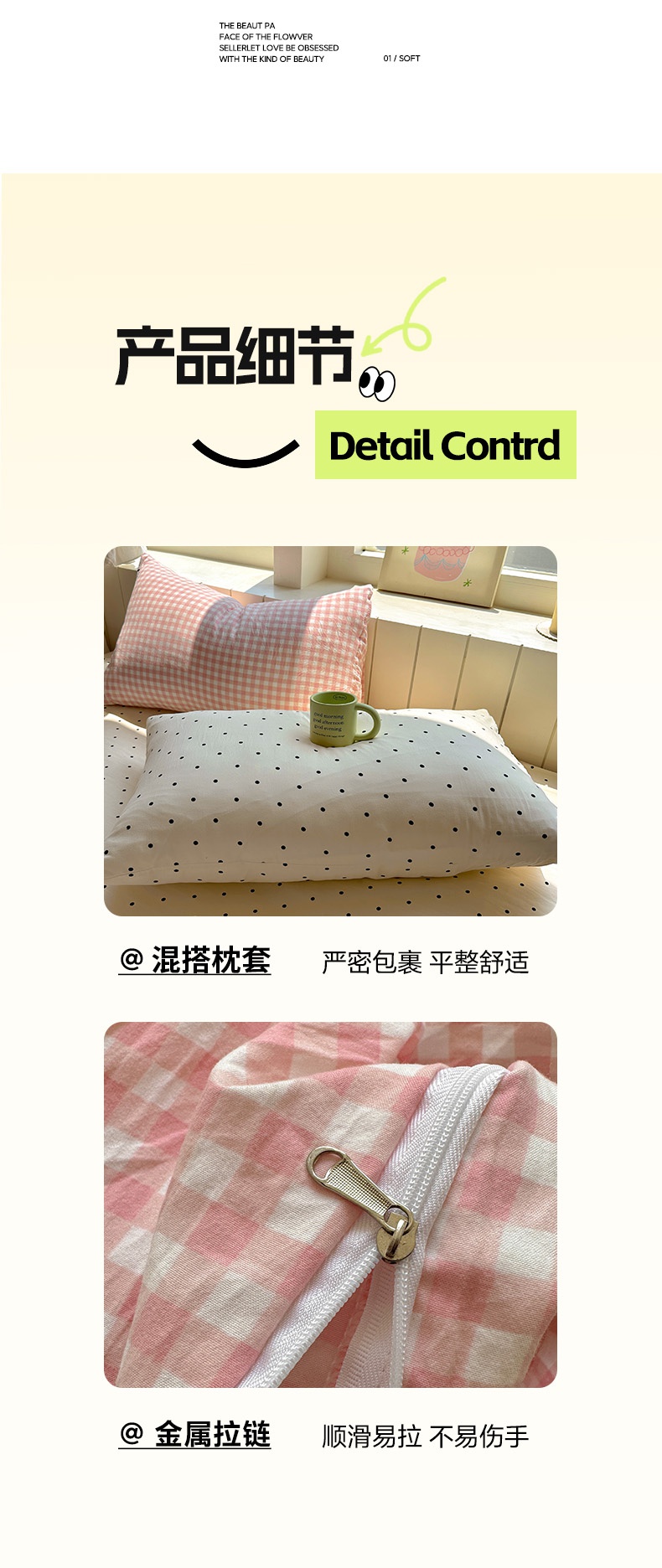(总)冕悠家纺 2025新款A类加厚水洗棉格子点点印花超柔单品床单枕套,组合图,粉格,蓝点,蓝格,绿格,米点,紫点,紫格