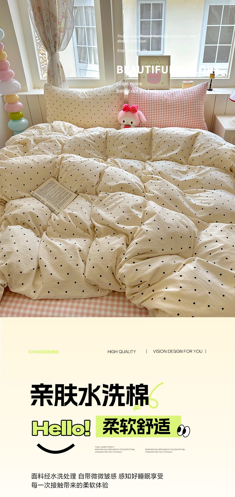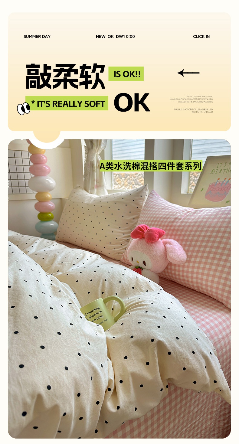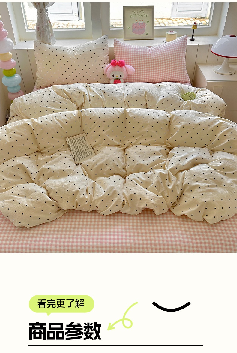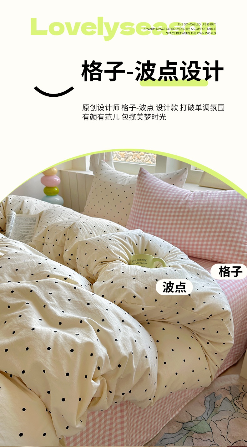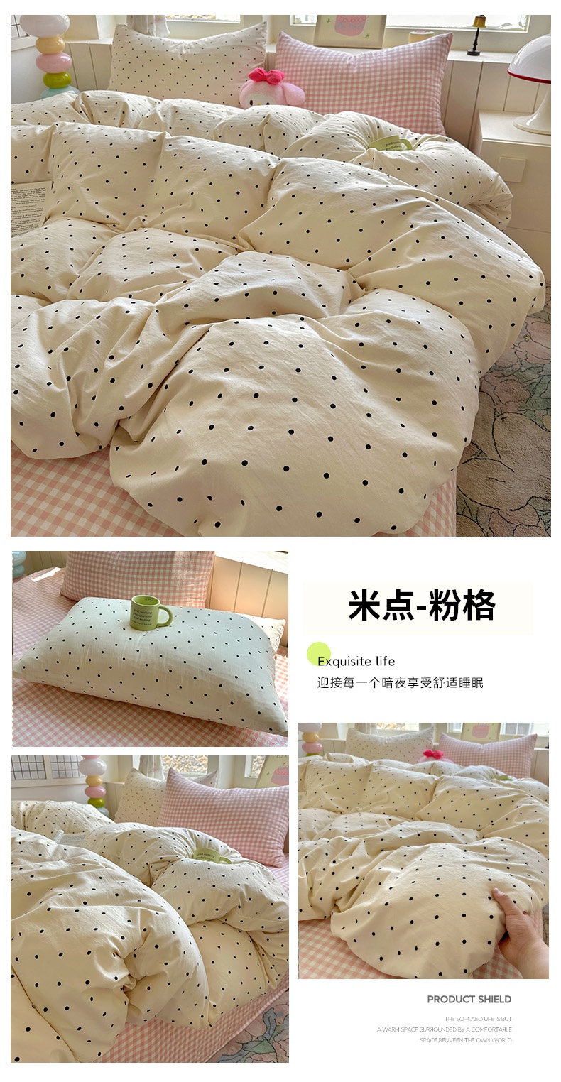 商品名称:冕悠家纺 2025新款少女心超柔加厚混搭格子水洗棉单品被套 米点+粉格