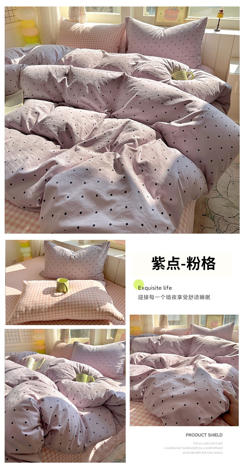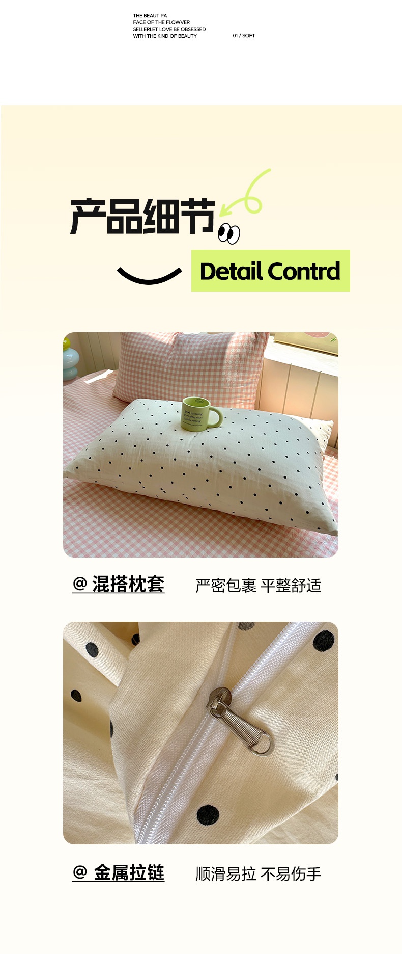 (总)冕悠家纺 2025新款A类加厚水洗棉格子点点印花超柔单品床单枕套,组合图,粉格,蓝点,蓝格,绿格,米点,紫点,紫格