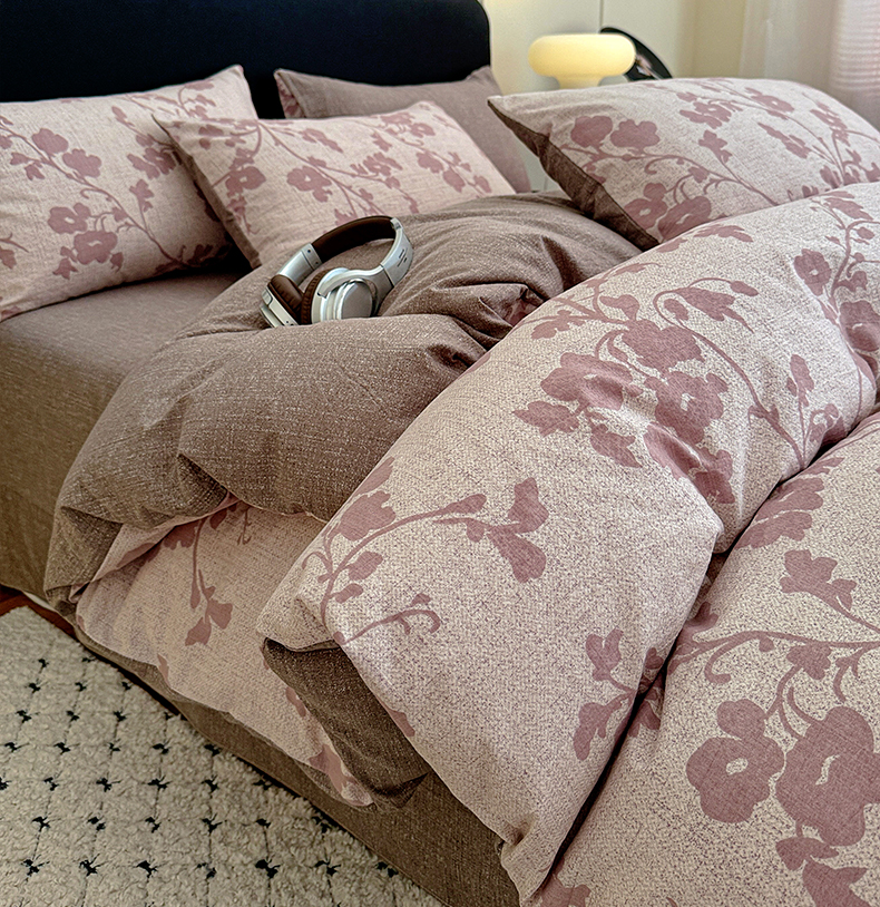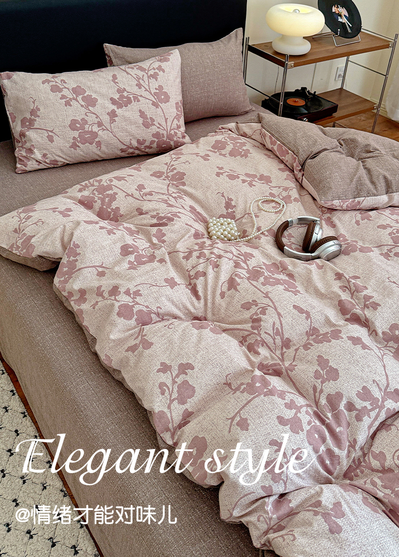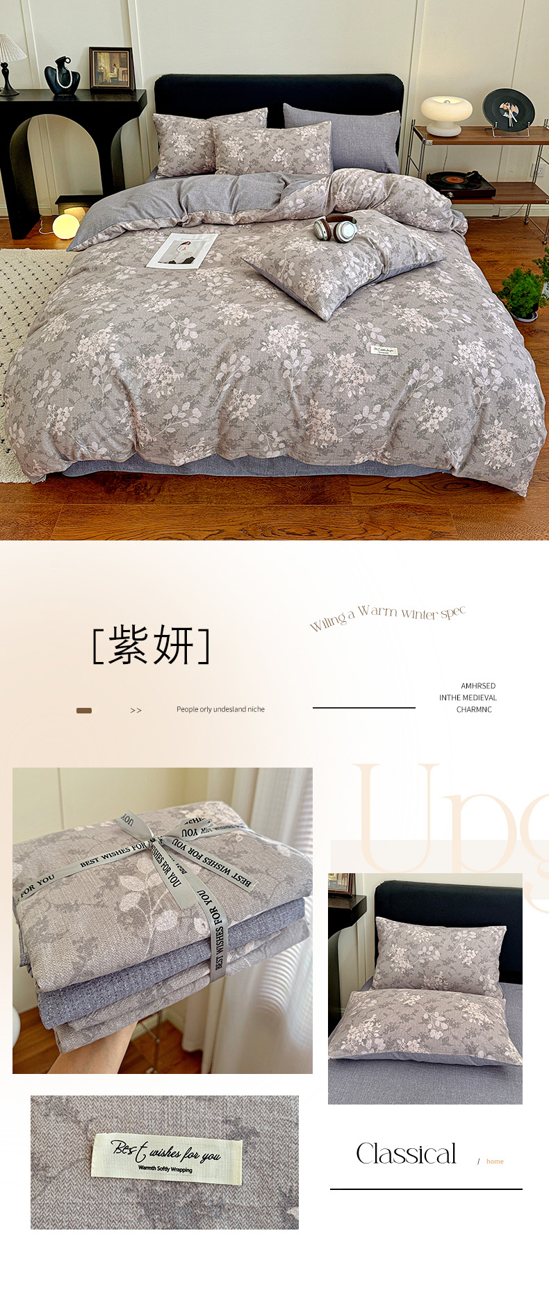 金梦拉家纺 2025秋冬爆款新品高克重加厚原麻亚麻皱皱纱印花四件套 花颜
