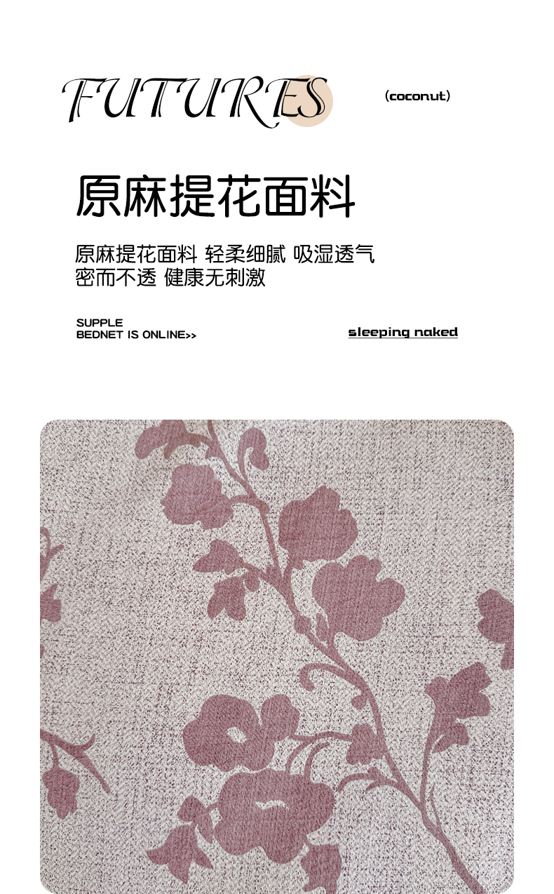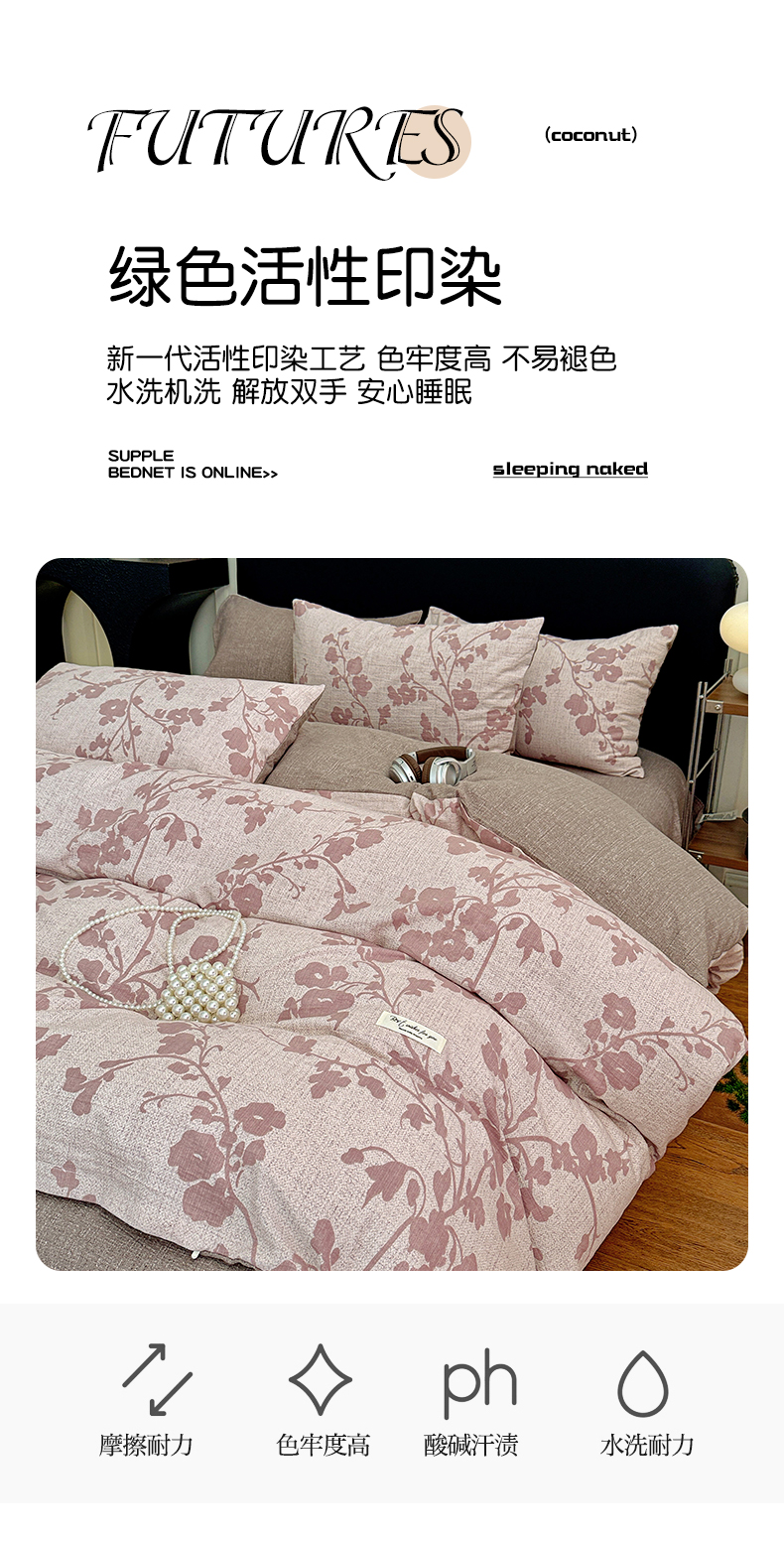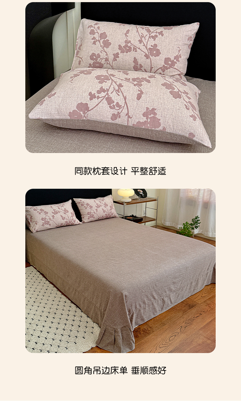 商品名称:金梦拉家纺 2025秋冬爆款新品高克重加厚原麻亚麻皱皱纱印花四件套 花颜