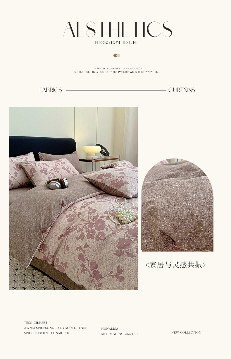 (总)金梦拉家纺 2026新款色织棉麻棉纱小露麻四件套,艾马,安缦,粉绘花影,枫韵,扶摇,锦瑟,兰织梦,梨花季,弥花季,南枝,手写信,四叶草,甜梦,小津绿,小熊,心心点点,枕边书,纸月,醉春烟