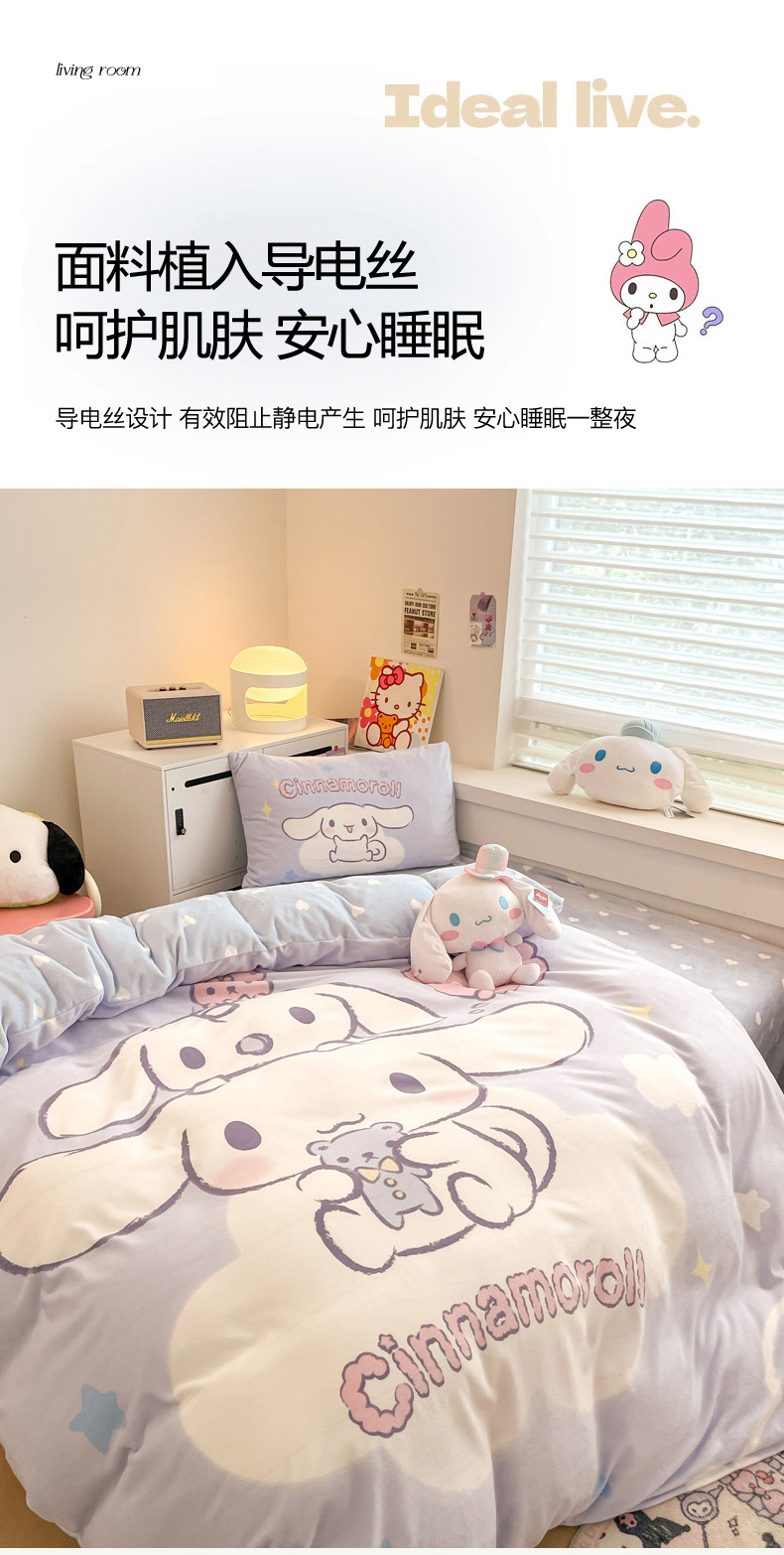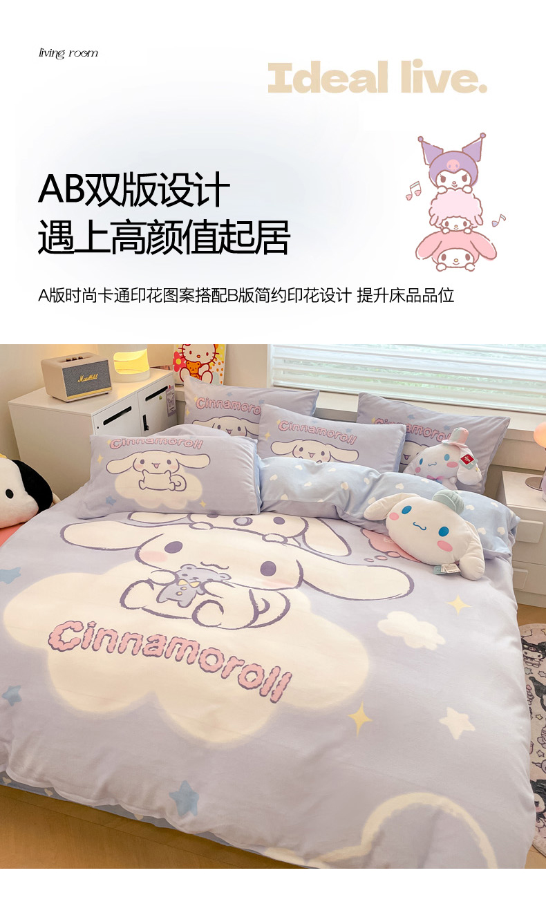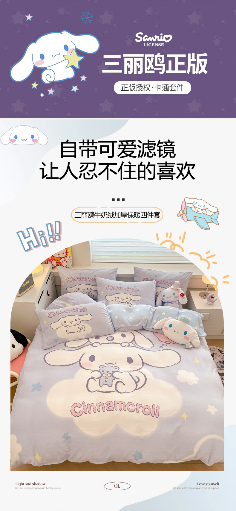 当前位置: 91家纺网 > 商品网购 > 床品套件 > 四件套 > 牛奶绒四件套 > 暮思家居 2025新款正版授权三丽鸥大阪数码印花高克重加厚保暖牛奶绒四件套 绒大阪-玩偶玉桂狗