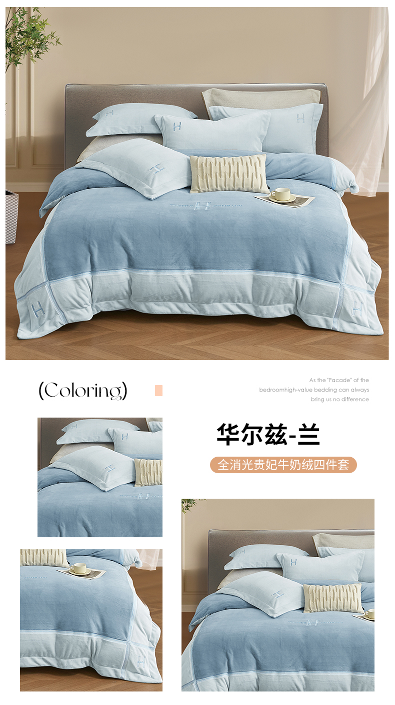 (总)梦精灵家纺 2025新款高端贵妃绒加厚全消光牛奶绒四件套12斤刺绣拼接工艺(华尔兹场景1),华尔兹-粉,华尔兹-桔,华尔兹-兰,华尔兹-绿,华尔兹-驼,华尔兹-紫