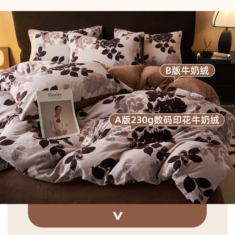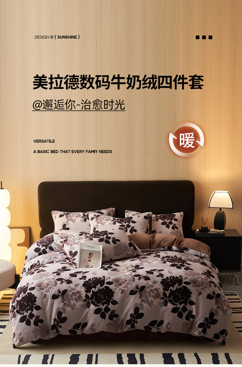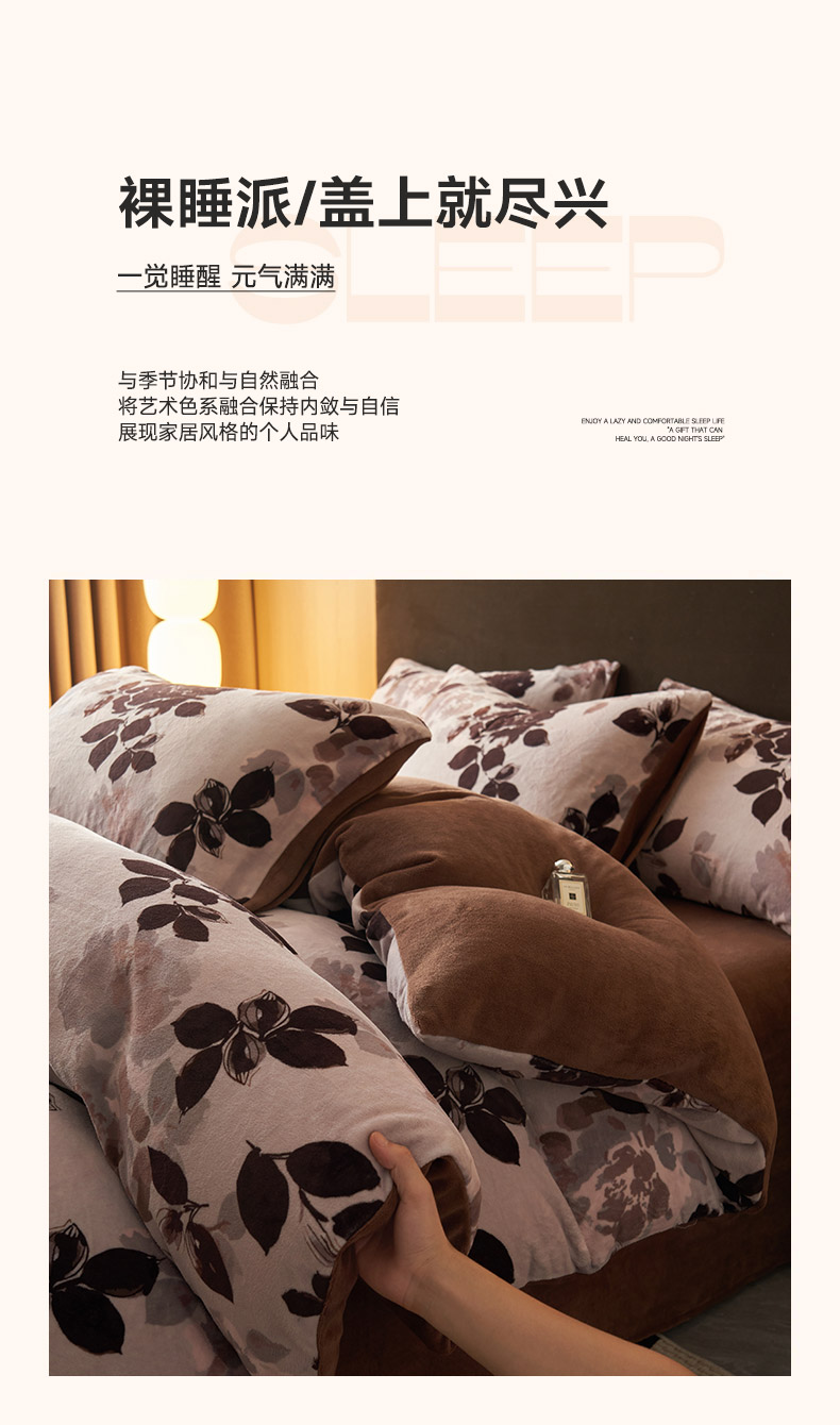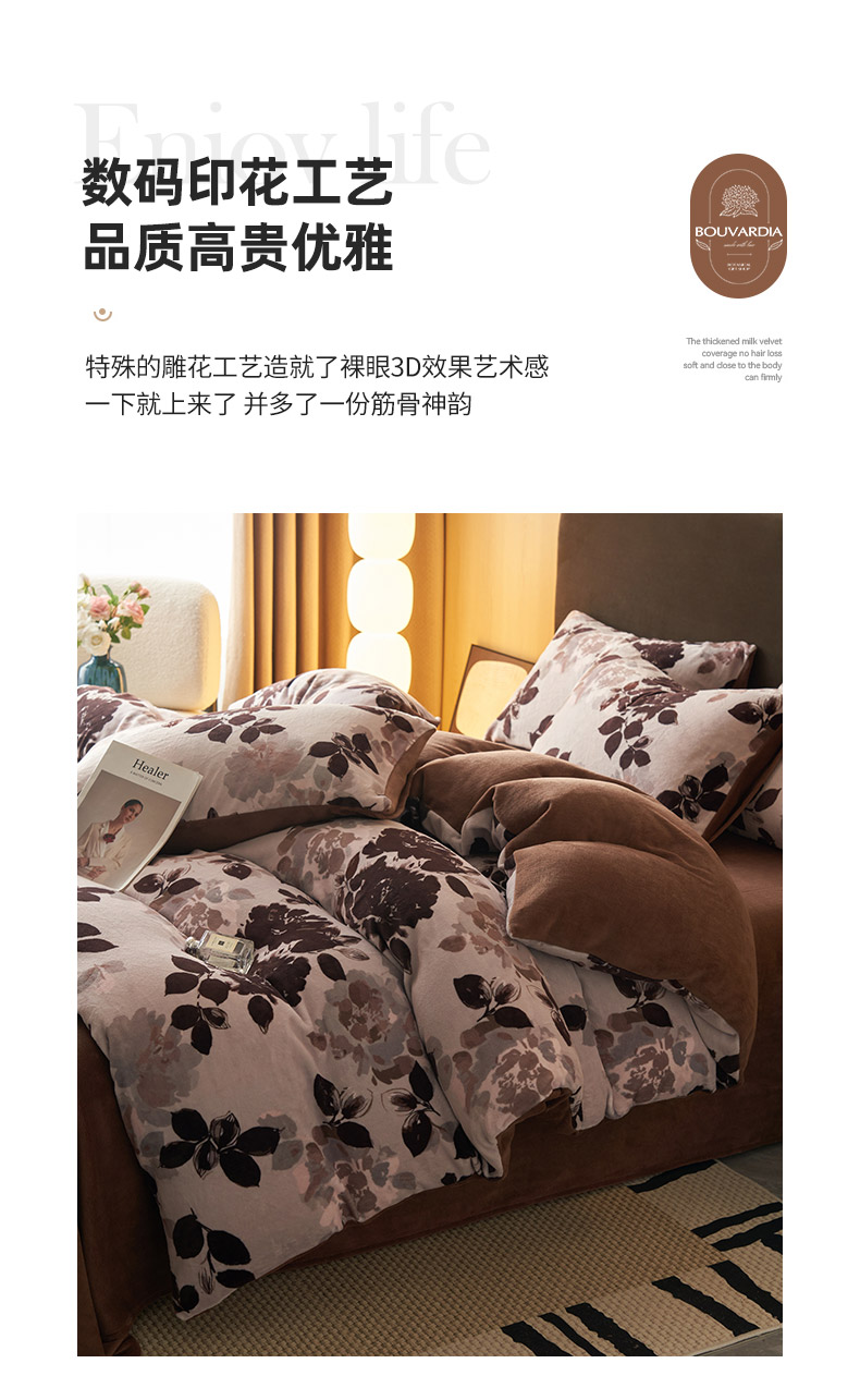 (总)吾秀家居 绒城 230克美拉德数码绒四件套 牛奶绒四件套 - 暖秋系列,花韵,暗香,冬日恋歌-咖,冬日恋歌-棕,冬日森林,花意浓,境玉森林,罗曼庄园,拿铁玫瑰,深紫罗兰,丝绒玫瑰,幽香花语