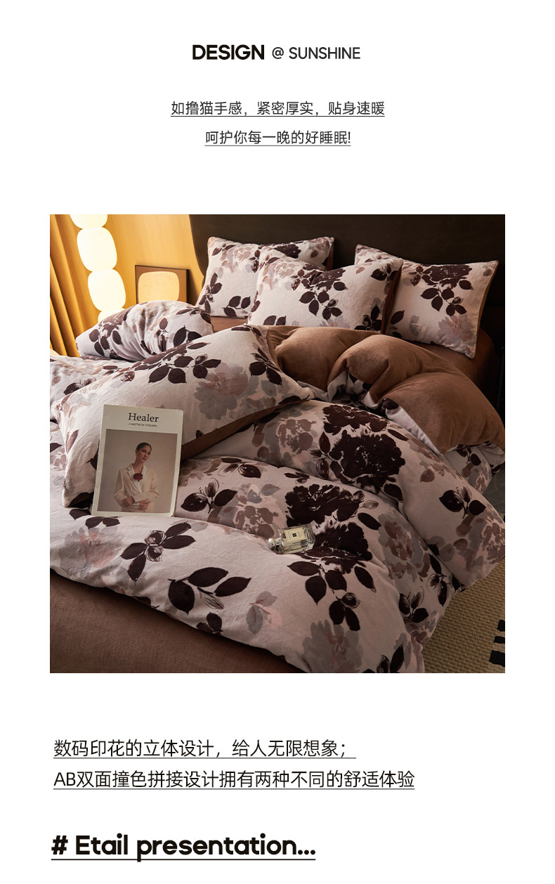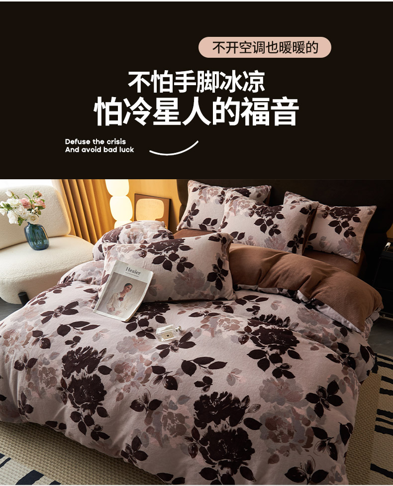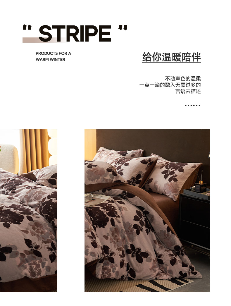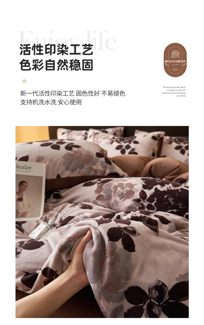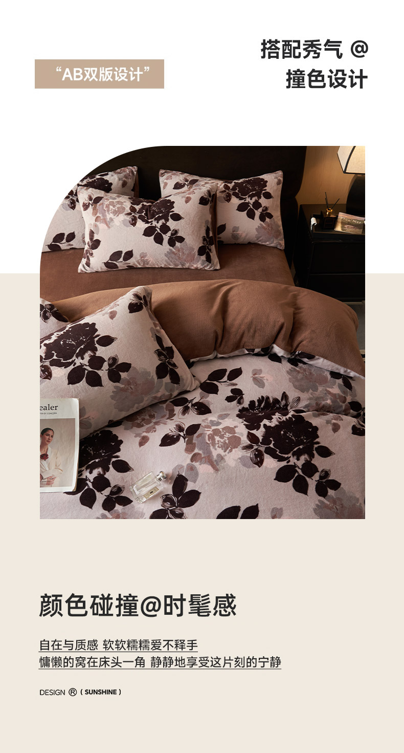 (总)吾秀家居 绒城 230克美拉德数码绒四件套 牛奶绒四件套 - 暖秋系列,花韵,暗香,冬日恋歌-咖,冬日恋歌-棕,冬日森林,花意浓,境玉森林,罗曼庄园,拿铁玫瑰,深紫罗兰,丝绒玫瑰,幽香花语