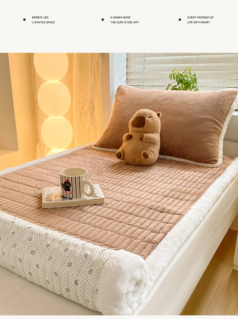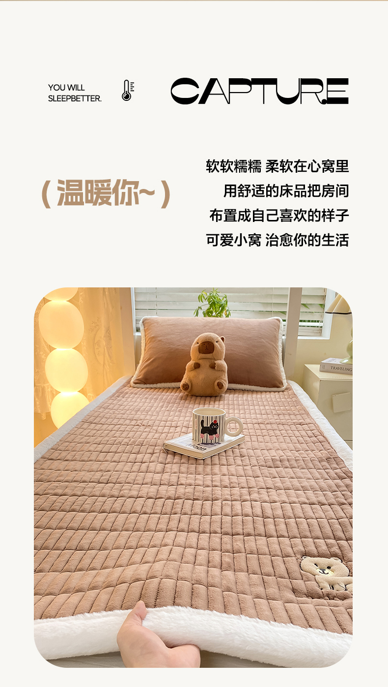 (总)梦初语 2025新款纯色牛奶绒贴布绣床垫褥冬季加绒加厚防滑学生宿舍 -直播爆款(面料17,猫咪-灰,猫咪-兰,维尼-咖,维尼-棕,小煤球-绿,小煤球-玉