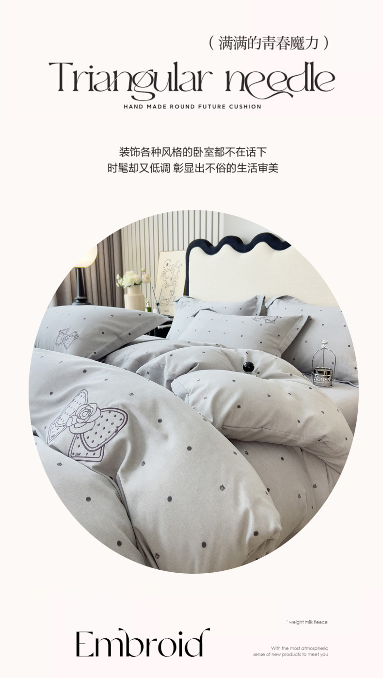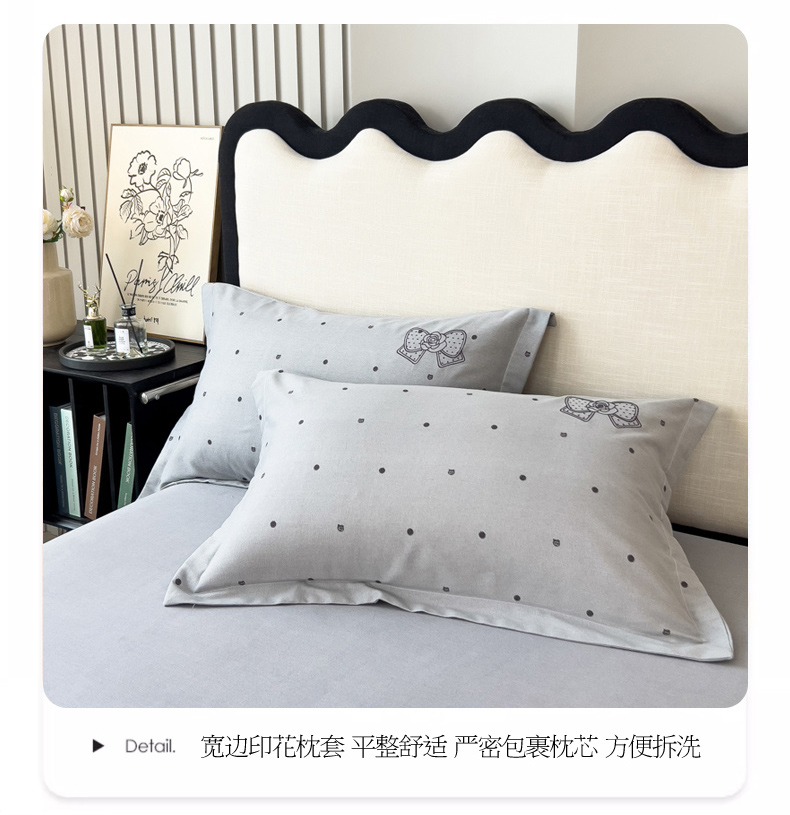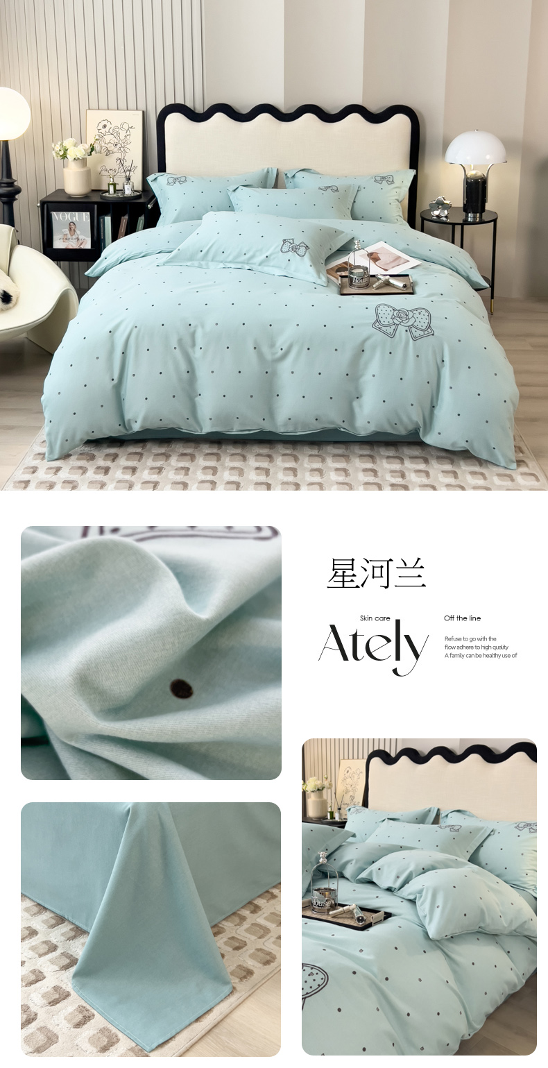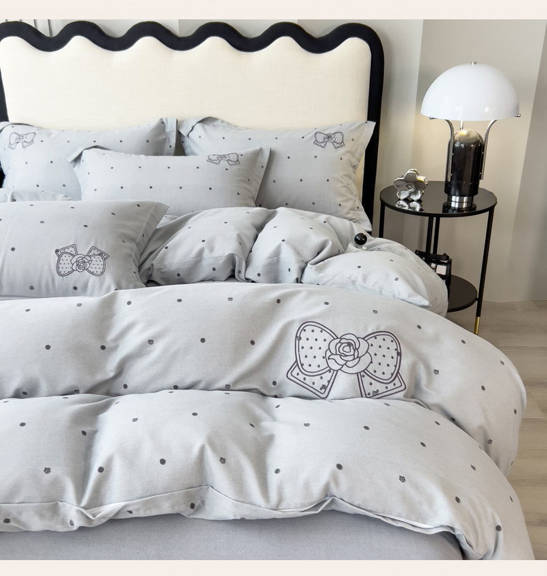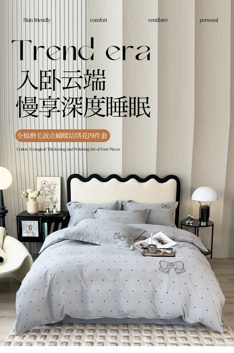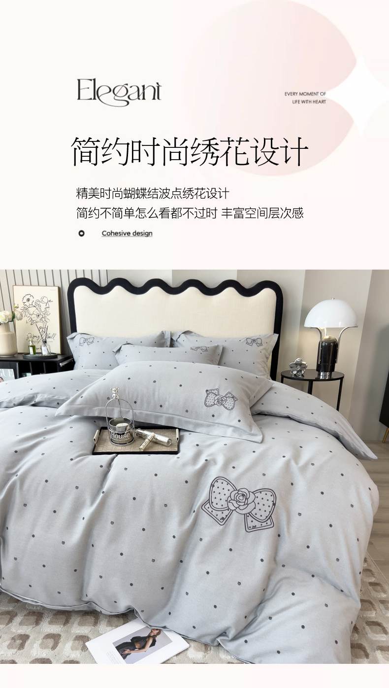 商品名称:(总)印季家纺 2025新款全棉纯棉波点蝴蝶结绣花混纺磨毛四件套