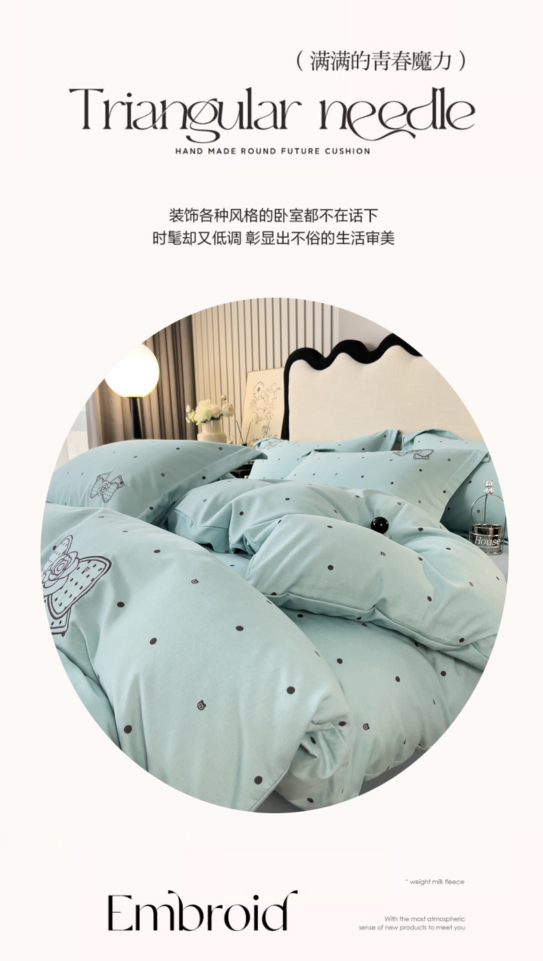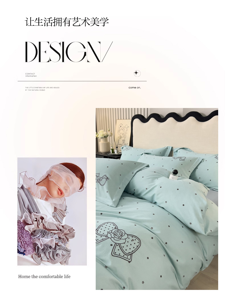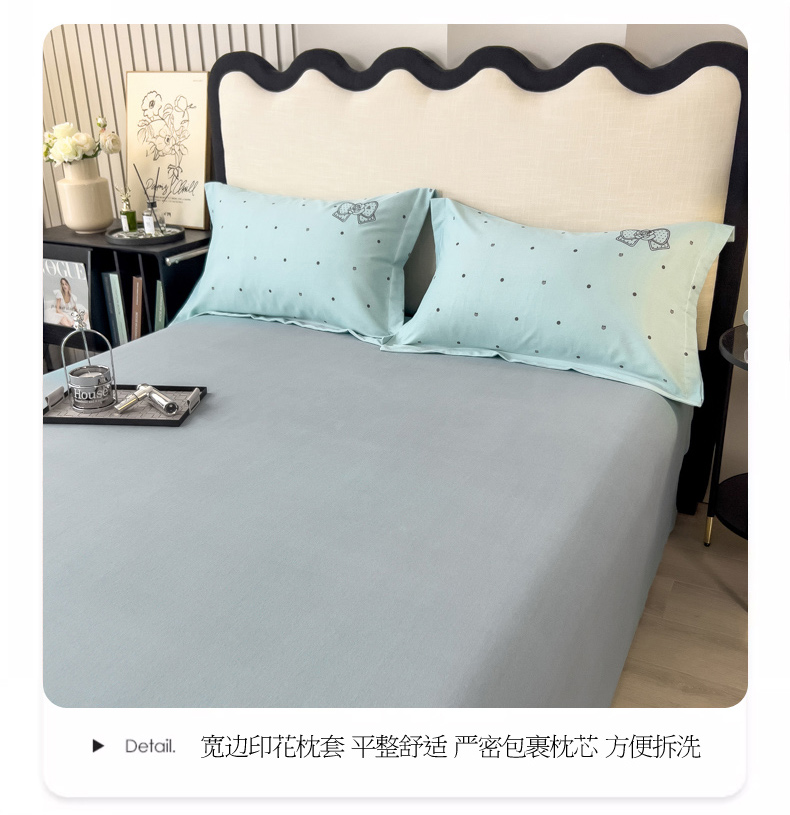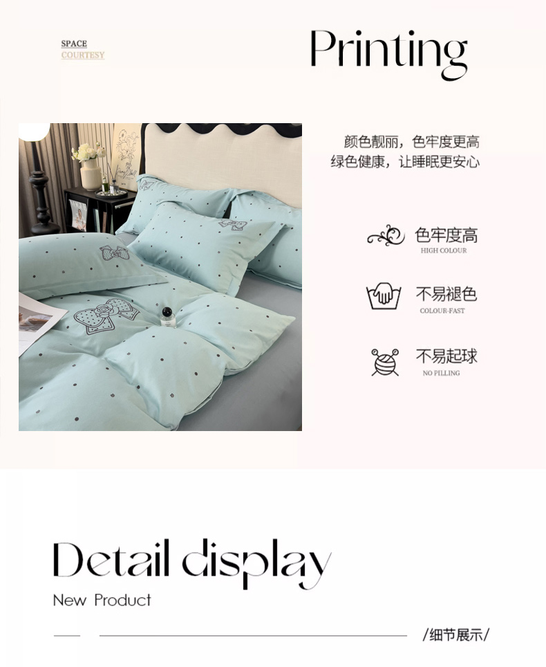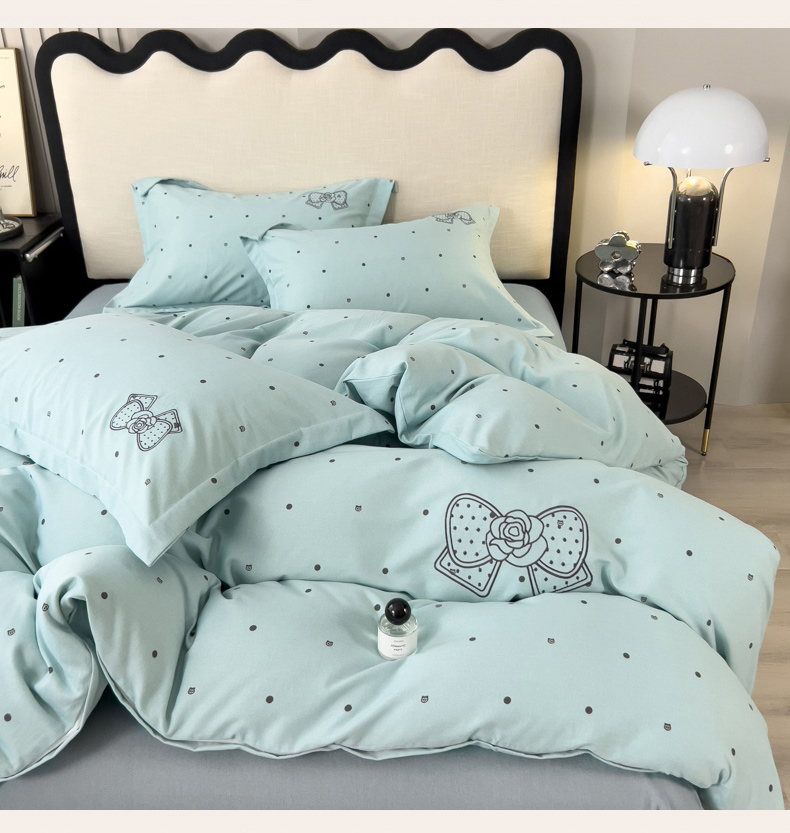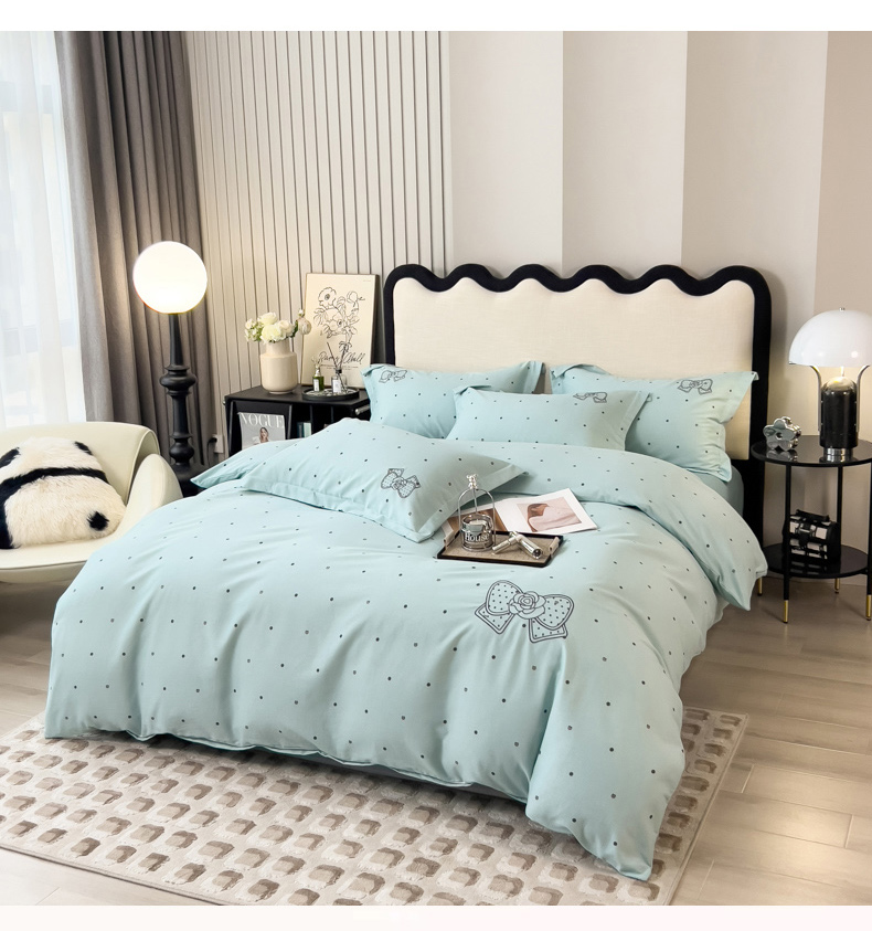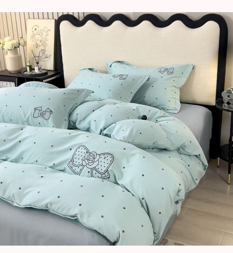当前位置: 91家纺网 > 商品网购 > 床品套件 > 四件套 > 全棉普通四件套 > 印季家纺 2025新款全棉纯棉波点蝴蝶结绣花混纺磨毛四件套 星河兰-灰