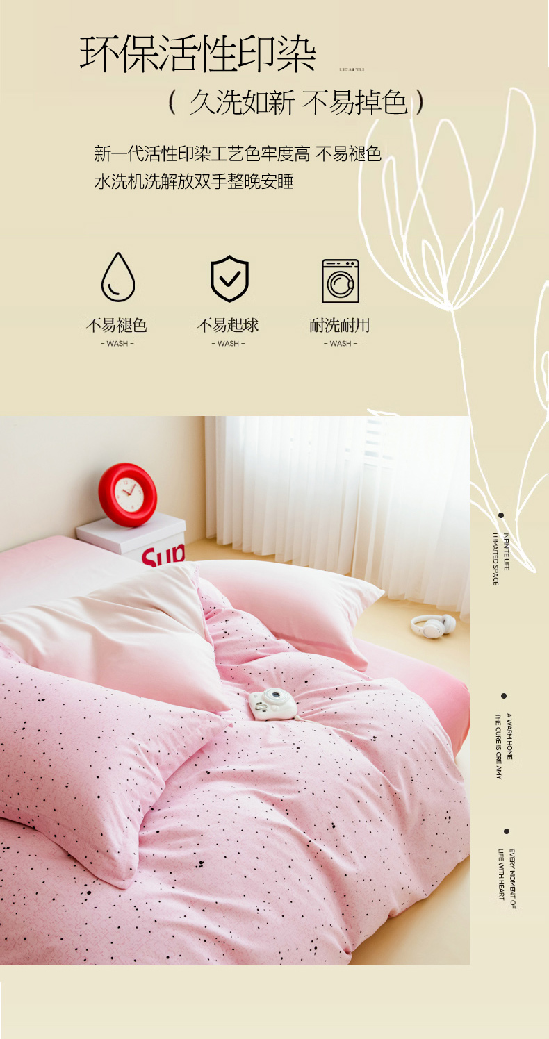 (总)印季家纺 2025新款全棉纯棉加厚混纺磨毛淡墨痕四件套
