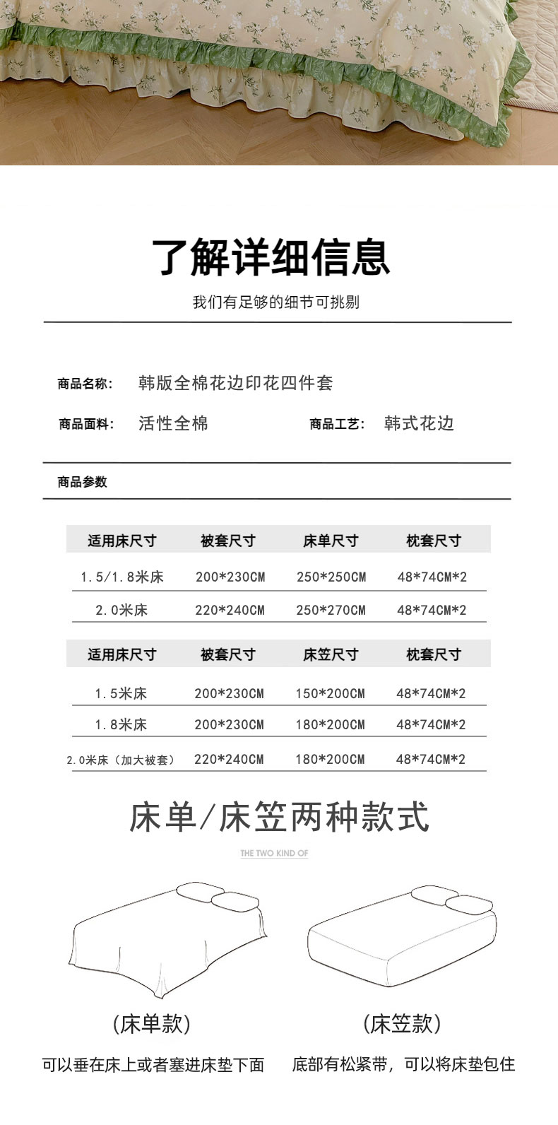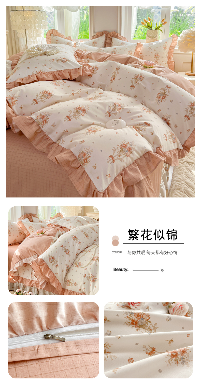 当前位置: 91家纺网 > 商品网购 > 床品套件 > 四件套 > 全棉普通四件套 > 兴美佳家纺 2026新款全棉印花韩版花边床裙款四件套 佳期如梦