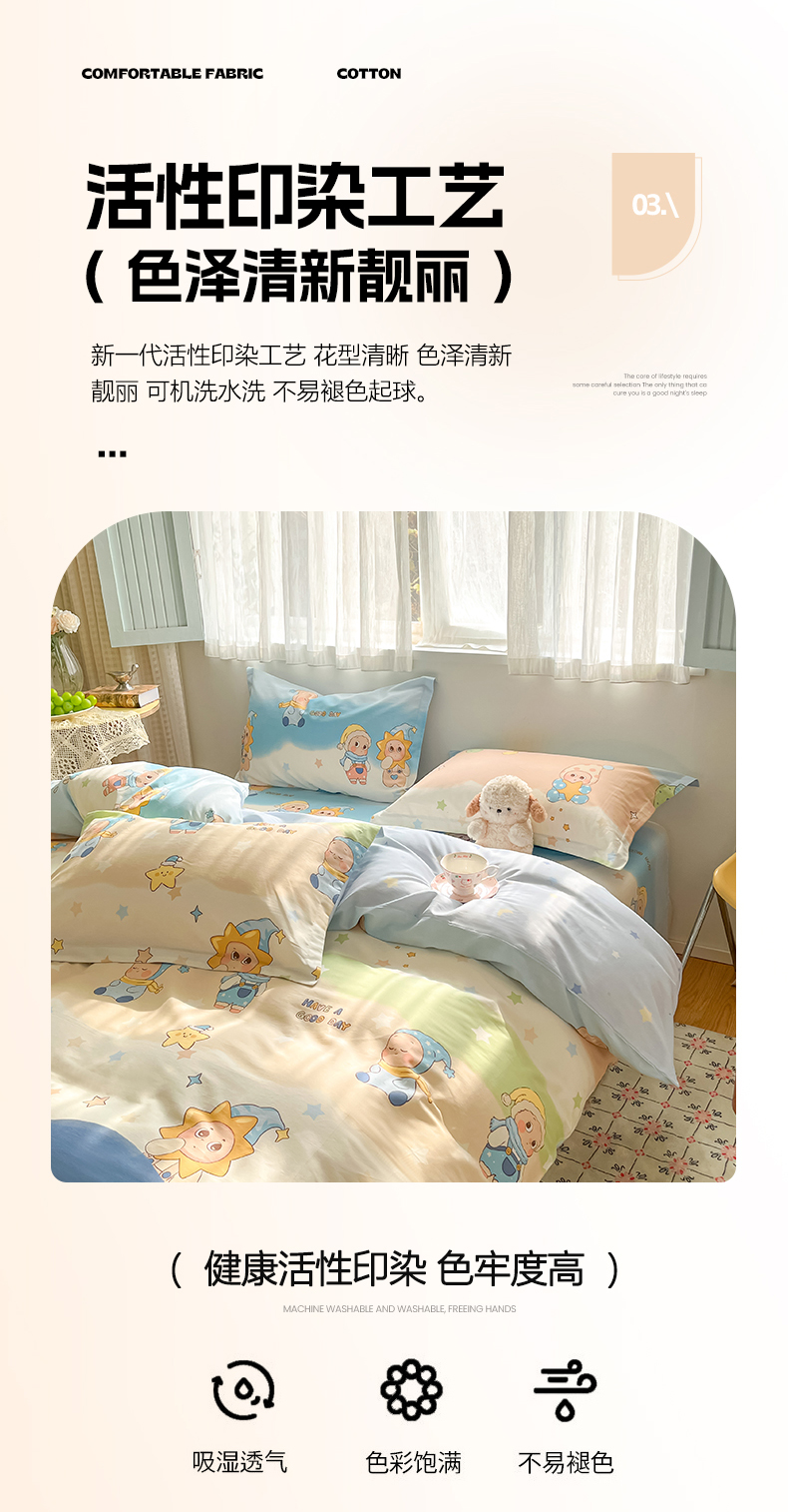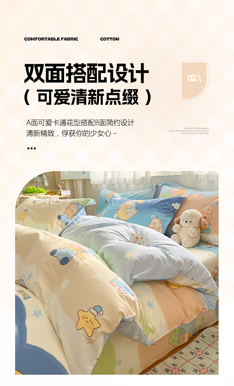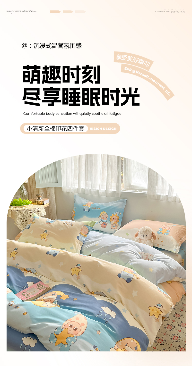 当前位置: 91家纺网 > 商品网购 > 床品套件 > 四件套 > 全棉普通四件套 > 花梦欣 2026新款全棉印花系列简约卡通款四件套 星梦童话