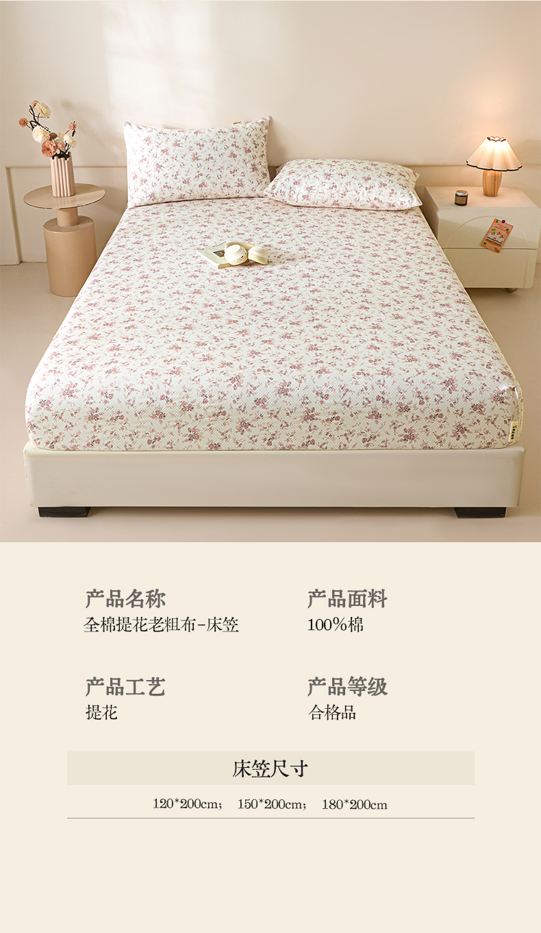 • 91家纺网 家纺一手货源 找家纺 涵宸家纺 2026新款全棉提花老粗布-单床笠 床笠-粉色恋人