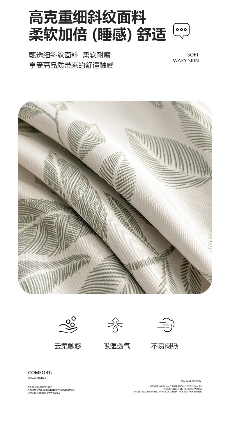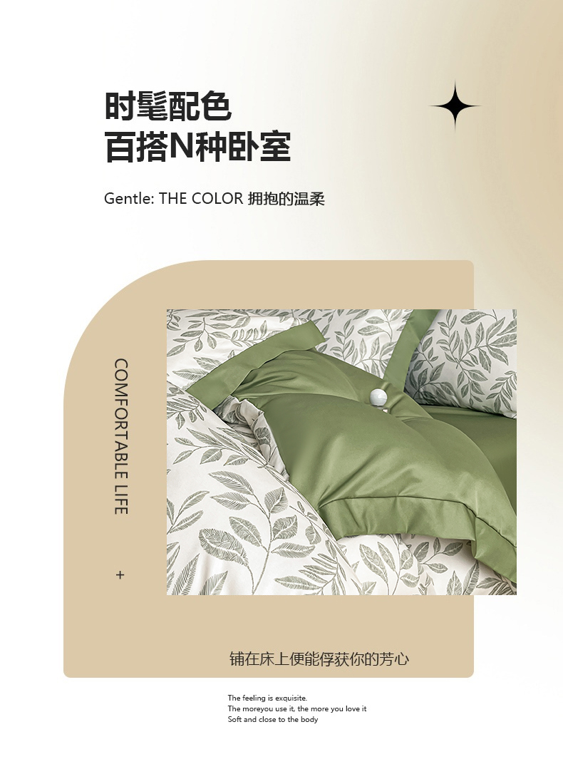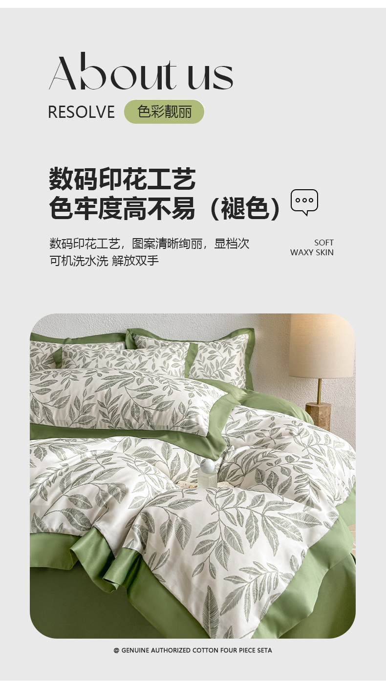 当前位置: 91家纺网 > 商品网购 > 床品套件 > 四件套 > 化纤活性四件套 > 金牛座家纺 2026新款高克重细斜纹丝柔质感亲肤数码印花宽边四件套-叶舞系列 叶舞-橄榄绿