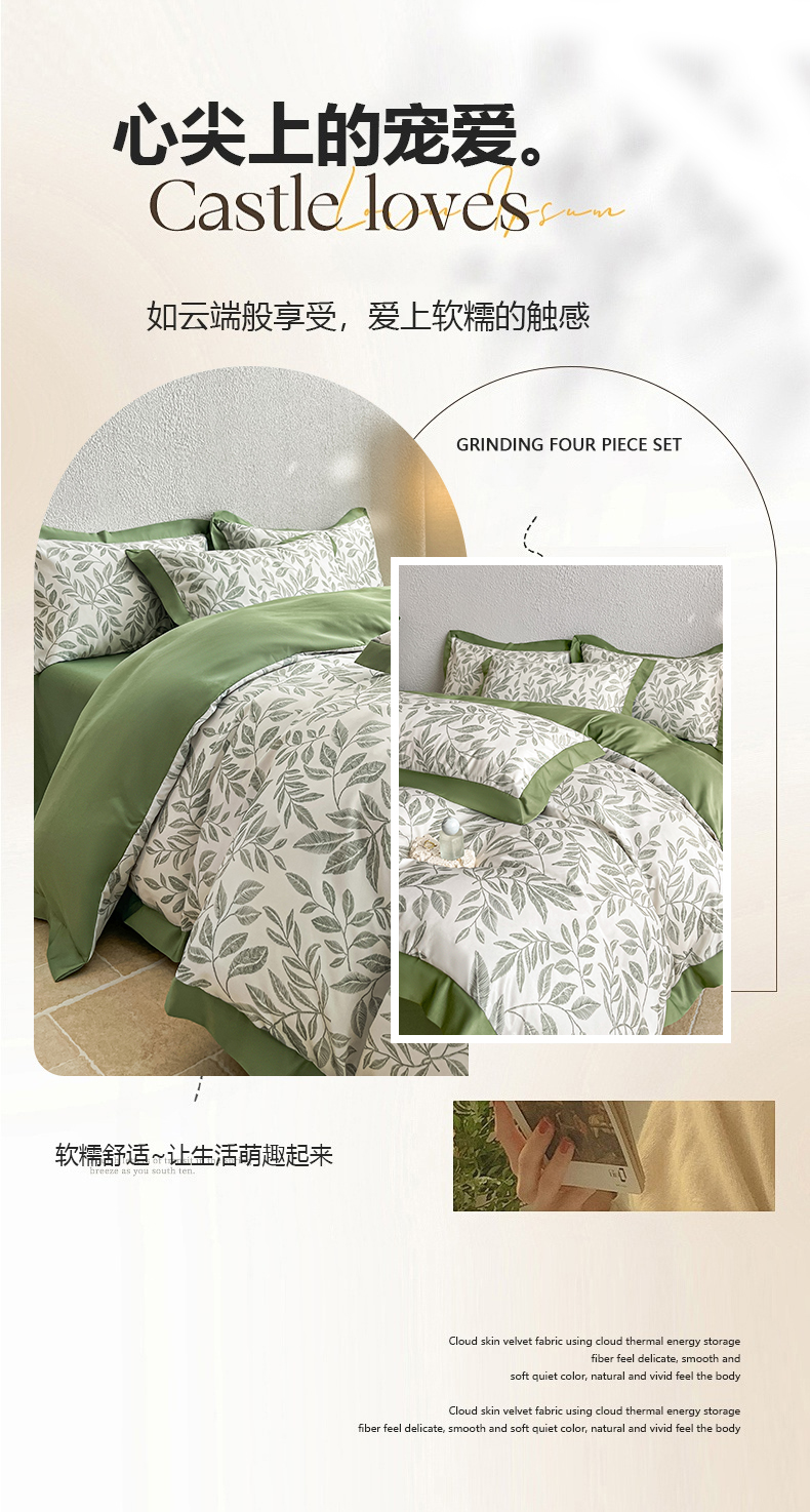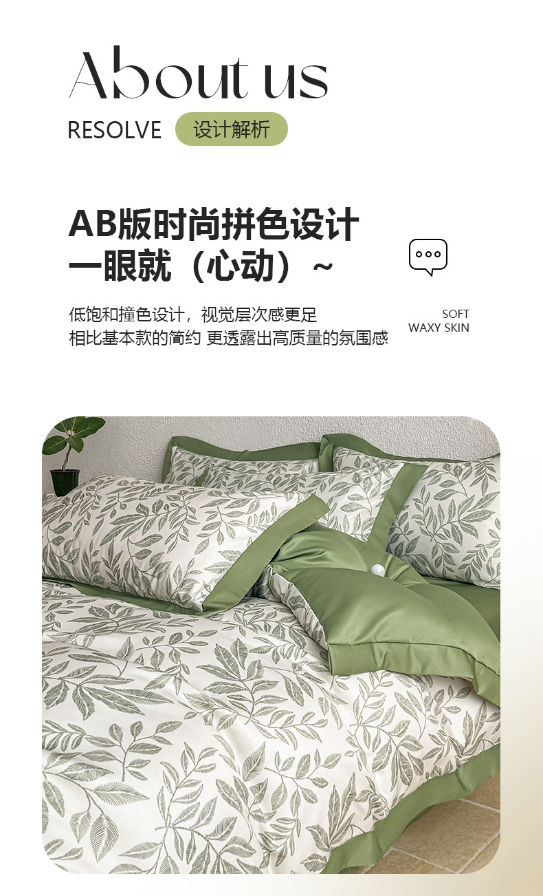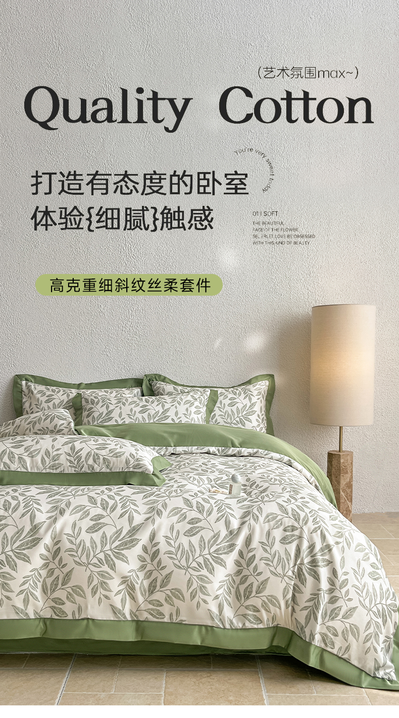 当前位置: 91家纺网 > 商品网购 > 床品套件 > 四件套 > 化纤活性四件套 > 金牛座家纺 2026新款高克重细斜纹丝柔质感亲肤数码印花宽边四件套-叶舞系列 叶舞-橄榄绿