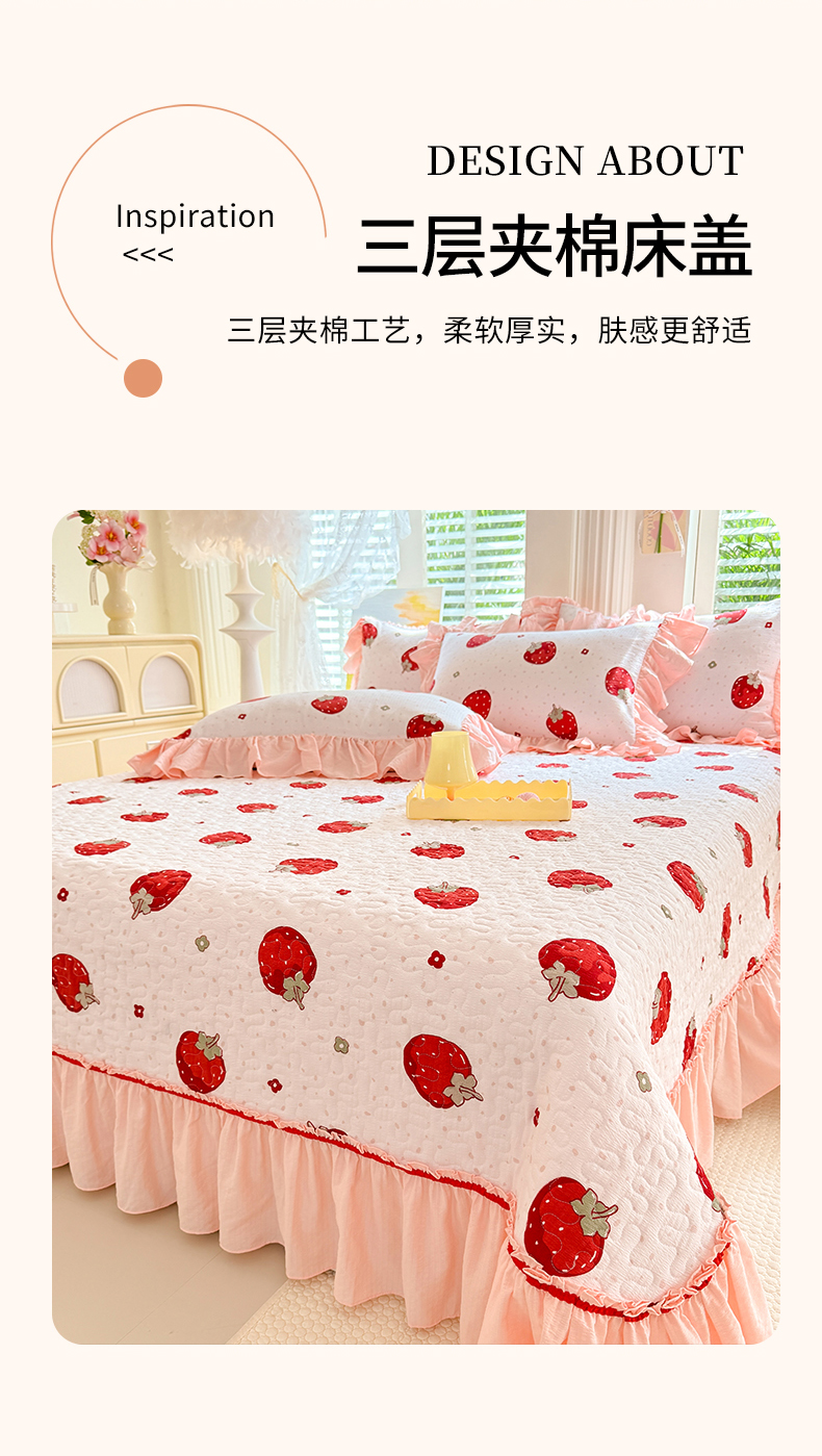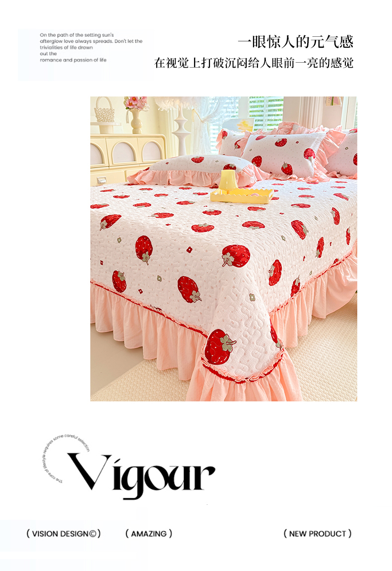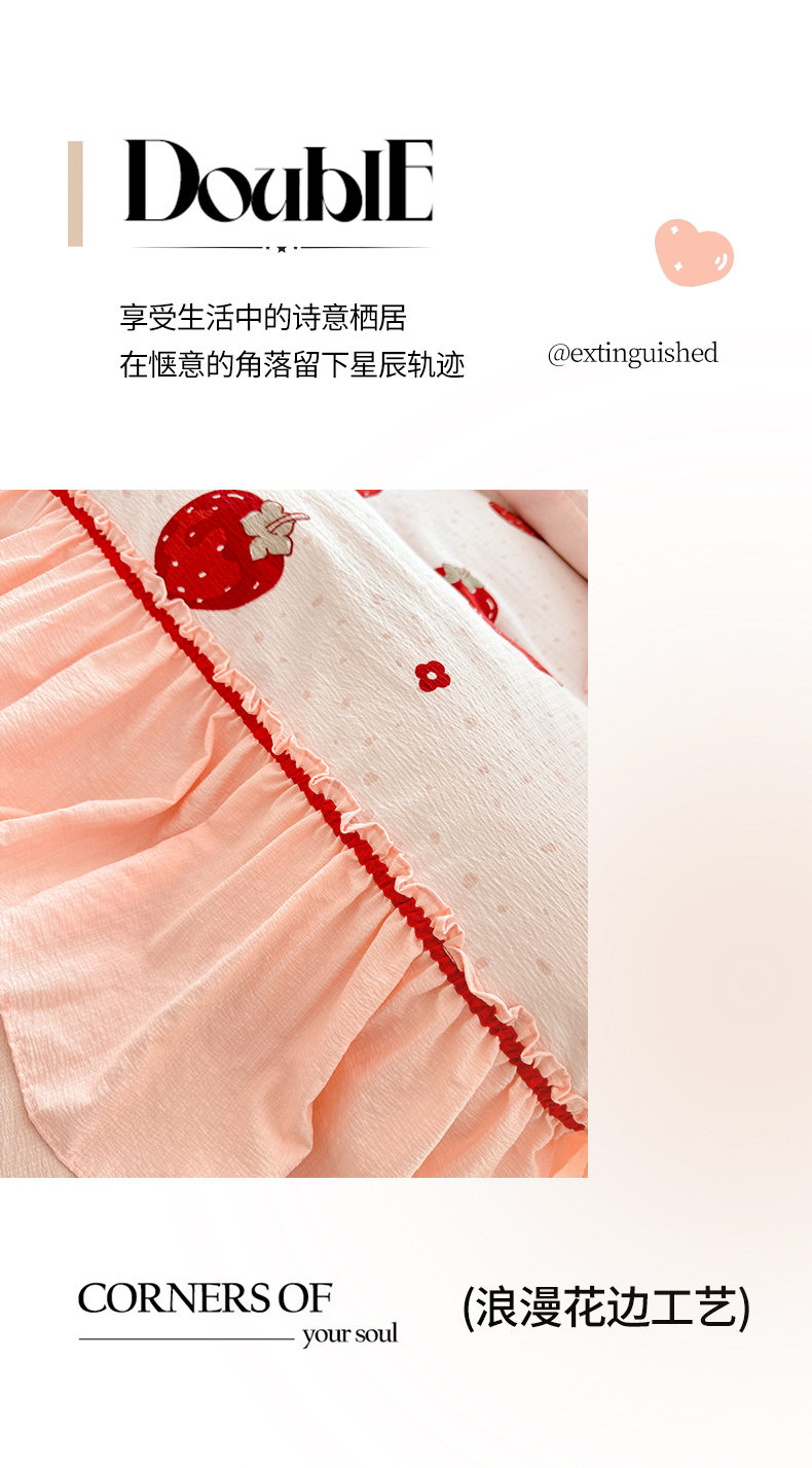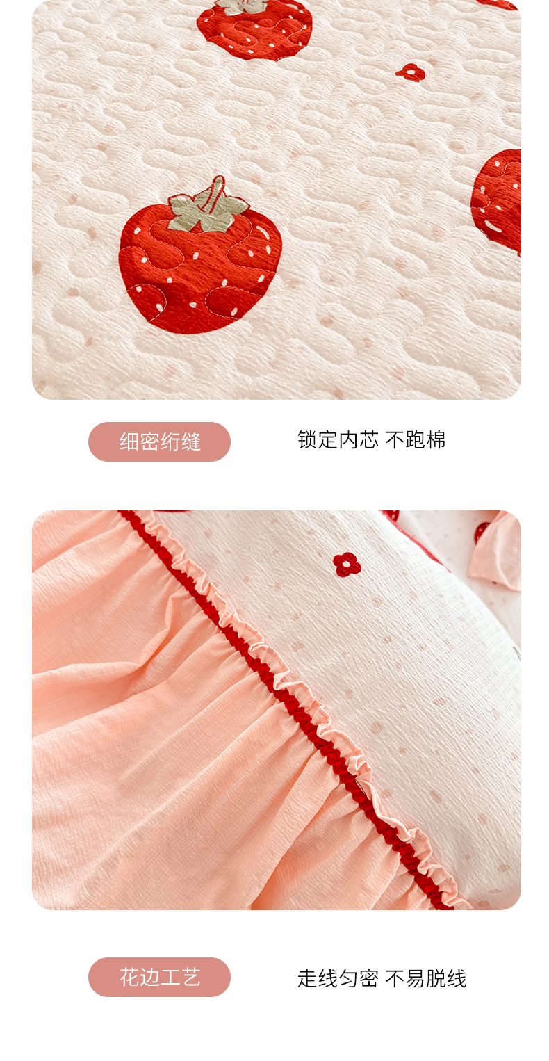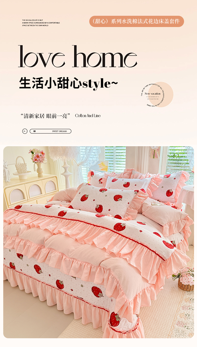当前位置: 91家纺网 > 商品网购 > 床品套件 > 四件套 > 水洗棉四件套 > 贝凯瑞 2026新款双层纱水洗棉法式复古花边床盖单件三件四件套-甜心 甜心草莓