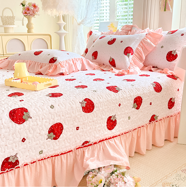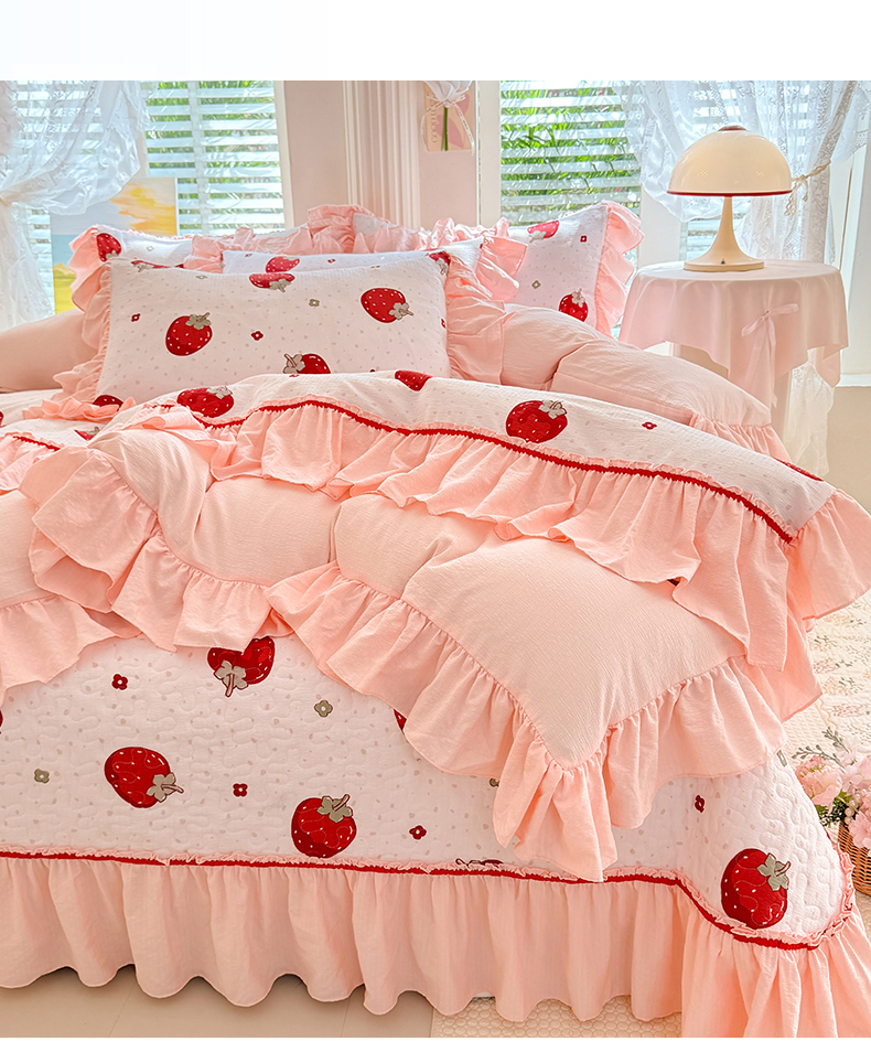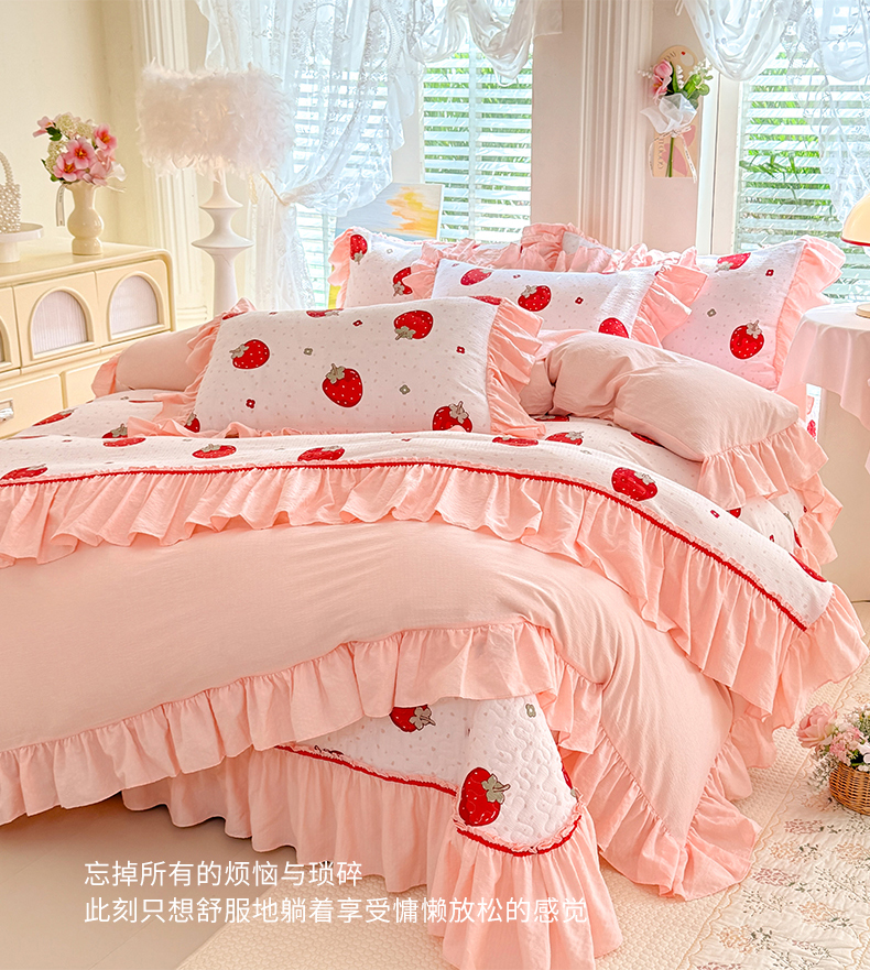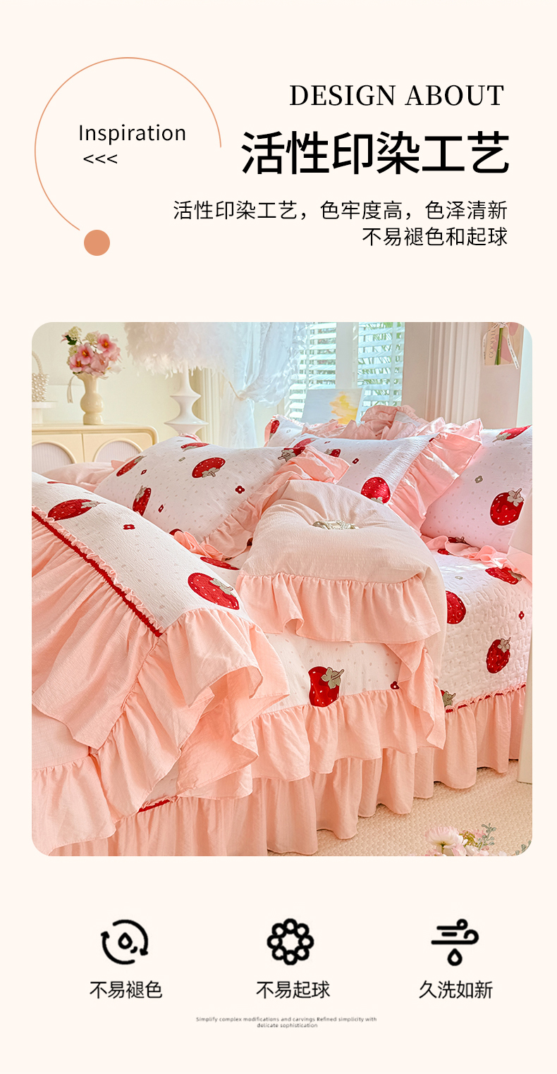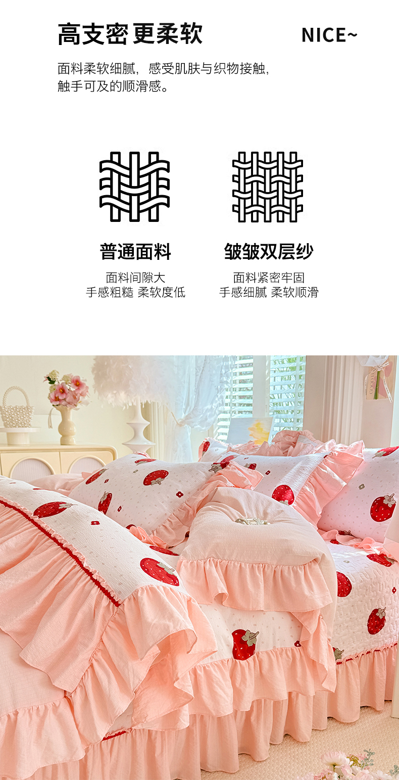 当前位置: 91家纺网 > 商品网购 > 床品套件 > 四件套 > 水洗棉四件套 > 贝凯瑞 2026新款双层纱水洗棉法式复古花边床盖单件三件四件套-甜心 甜心草莓