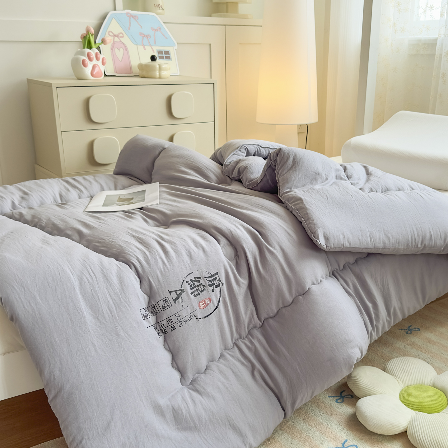 (总)玉相逢 2026新款供直播水洗棉大豆纤维春秋被夏被子被芯,灰色,白色,粉色