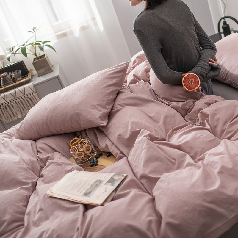 尚品本色 2023新款尚品本色水染水洗棉四件套 藕荷水貂灰
