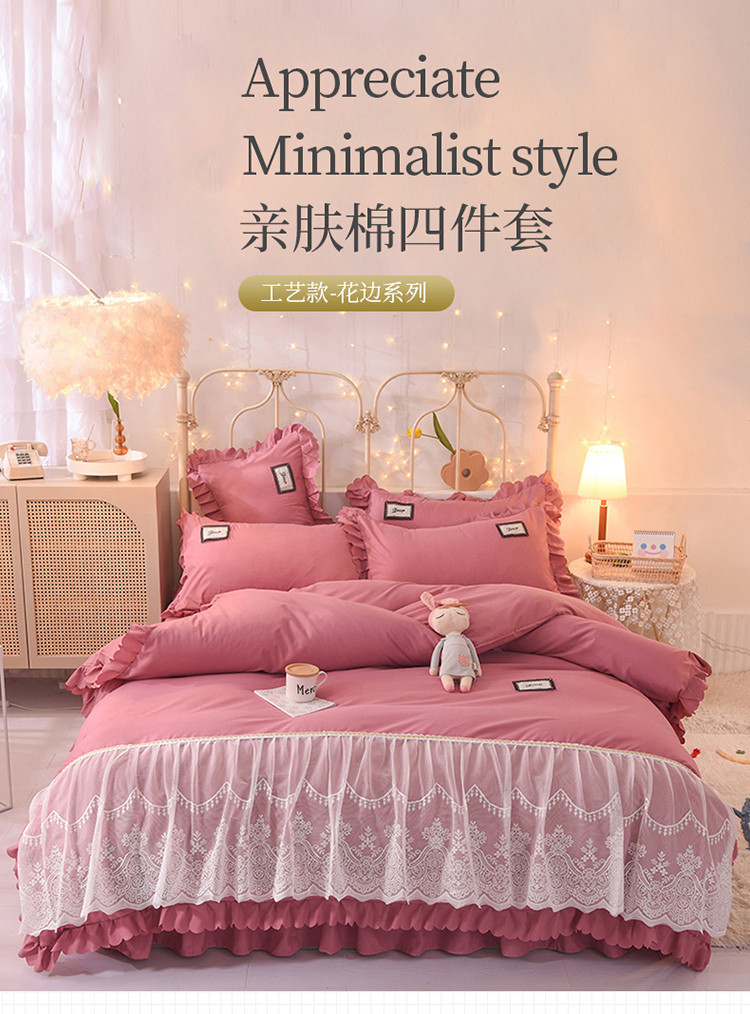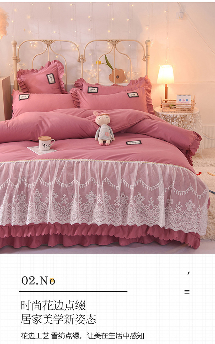 当前位置: 91家纺网 > 商品网购 > 床品套件 > 四件套 > 普通磨毛四件套 > 梦之岛2021新款倾心韩版磨毛蕾丝床单款床裙款四件套 倾心-暖豆沙