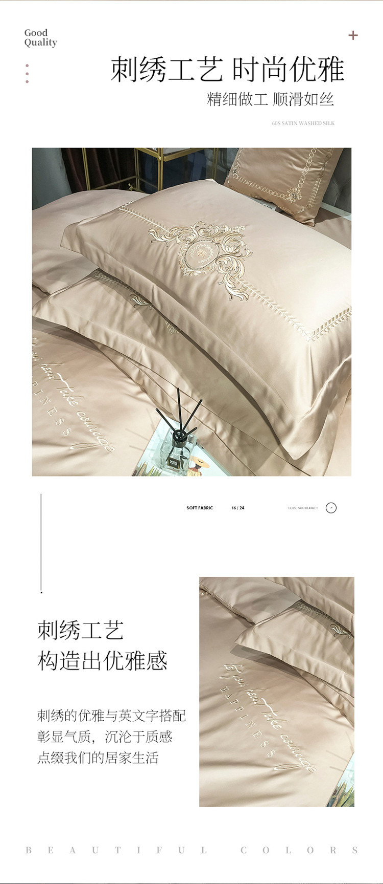 (总)安妮家居 2025新款100S长绒棉贡缎纯色四件套,水漾蓝,胧月灰,奶白色,蔷薇粉,柔缦紫,砂砾咖
